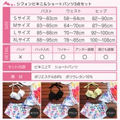ふんわりとしたシフォンがキュートなトップ、リゾート感あふれるボタニカル柄のボトムとショートパンツが目を引く3点セットです☆