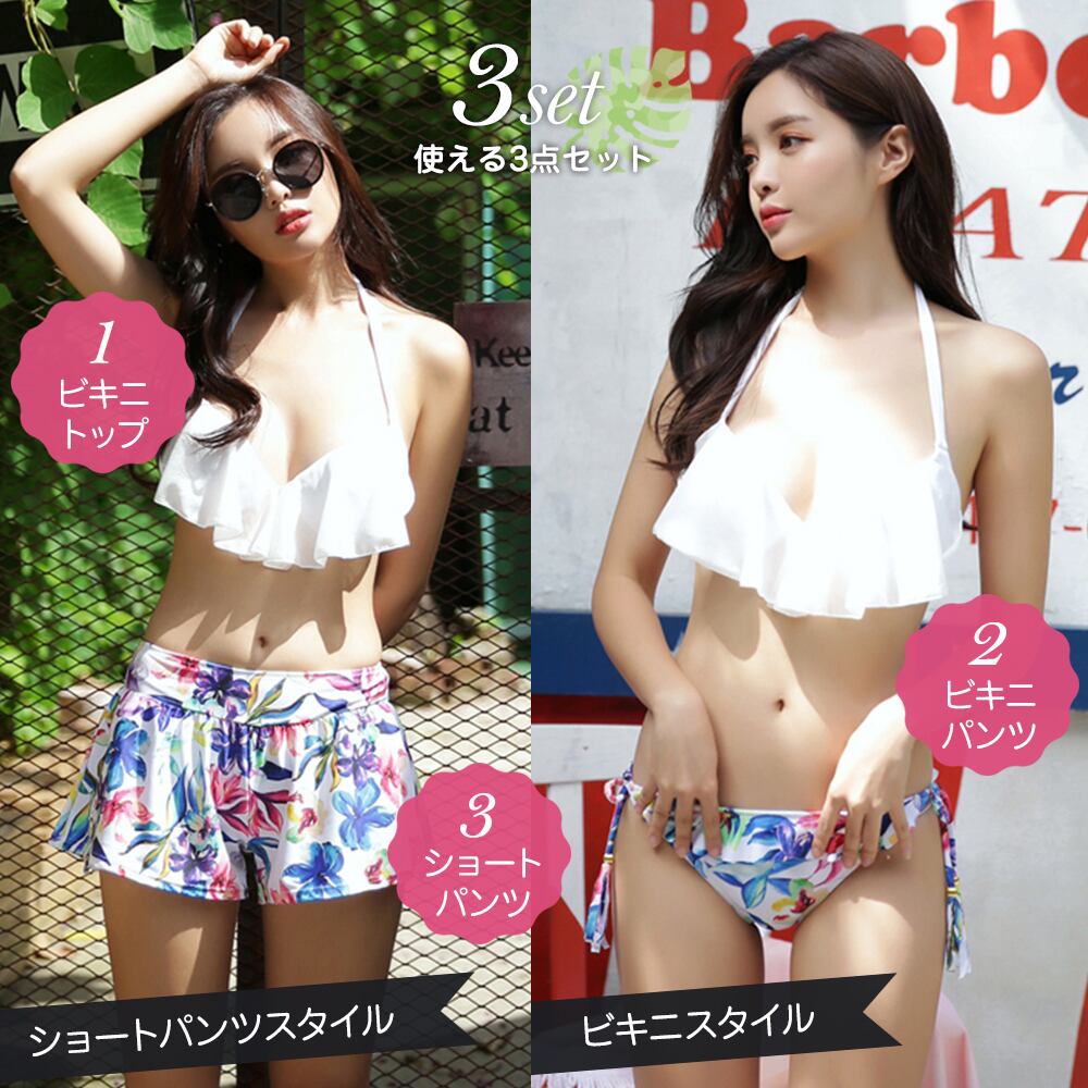 〇セット内容:3点セット:ビキニ上下、 ショートパンツ