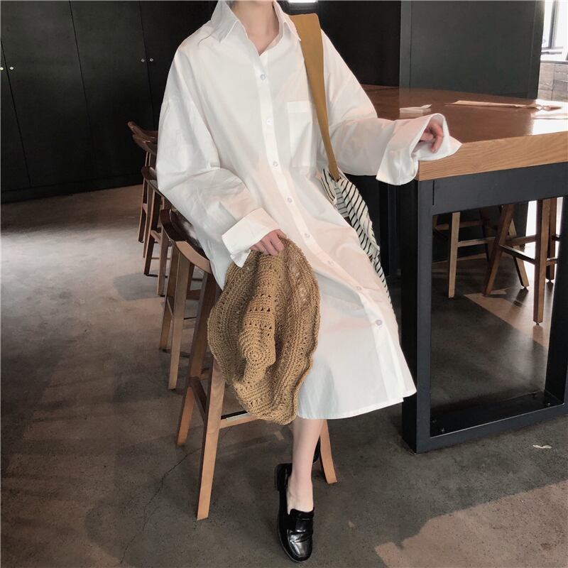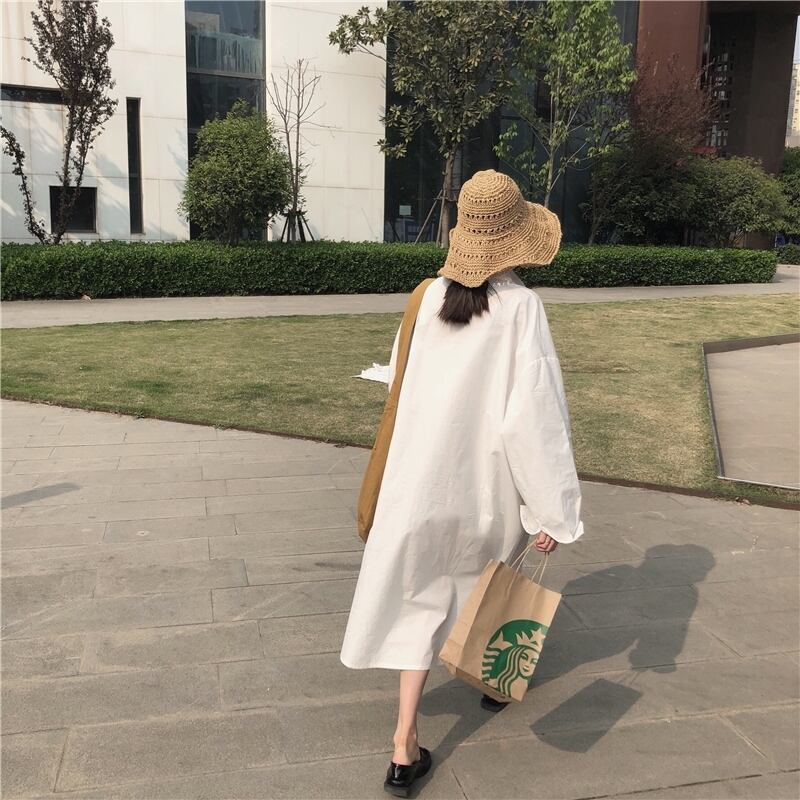 シャツワンピース スリット オーバーサイズ 長袖 ロング シャツ ワンピース レディース ワンピ ロング丈 マキシ アウター コットン シンプル 無地 大人 かわいい BIGシルエット ビッグシルエット ゆったり 大きめ 大きいサイズ 韓国 彼シャツ A003