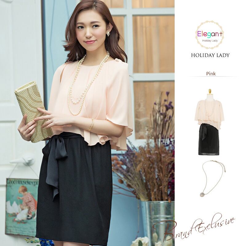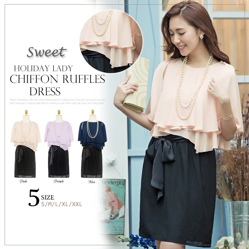 シフォンスリーブ薄手ストラップレスウェストドレス 19784459809