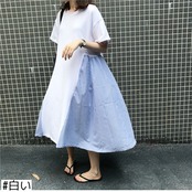 スプリング半袖スリーブラウンドネックドレス ショート コットン ハーフスリーブ 大人ガーリー スウィート キュート カジュアル 春物 Oネック 04204835189