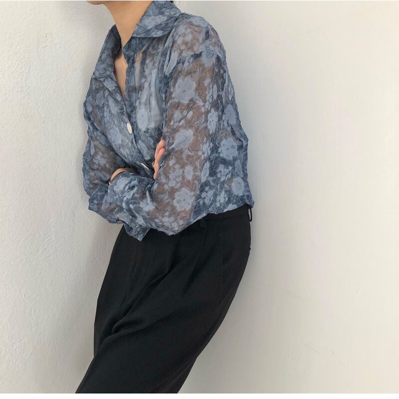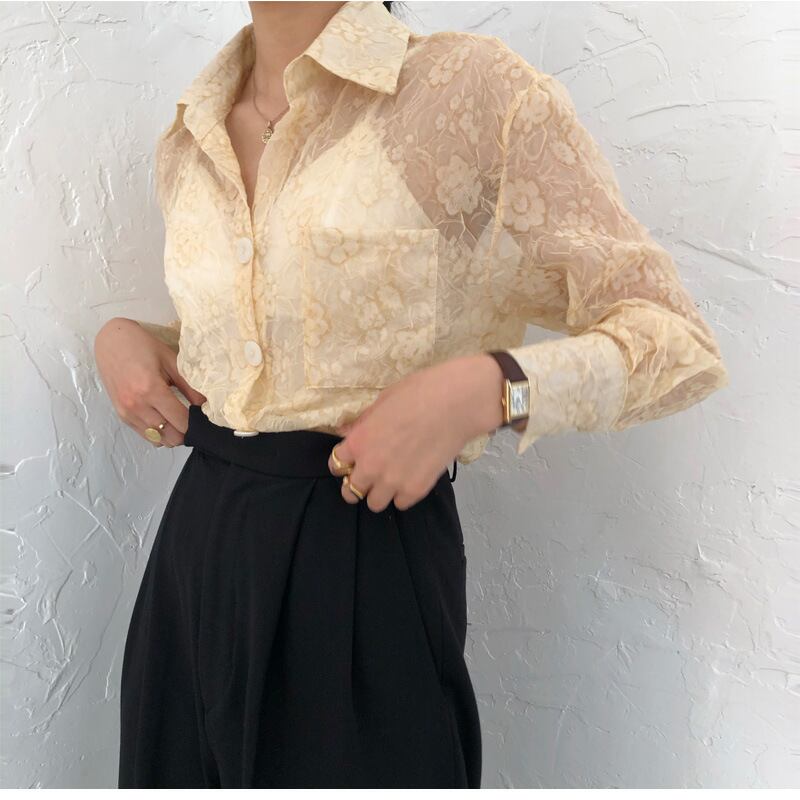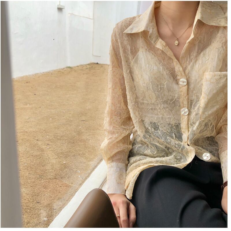 サマーレースカーディガン長袖スリーブルーズシャツ ロング レッド 刺繍 夏物 04206630779