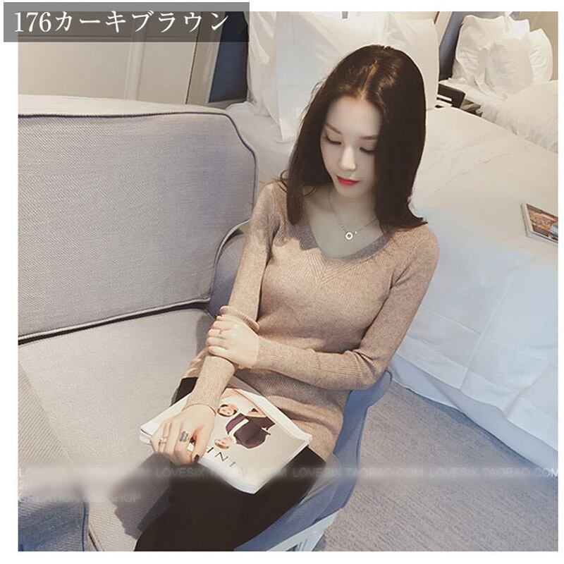 オータムウィンターニットセーター Vネックトップス 大人ガーリー スウィート キュート カジュアル 秋物 冬物 04201898975