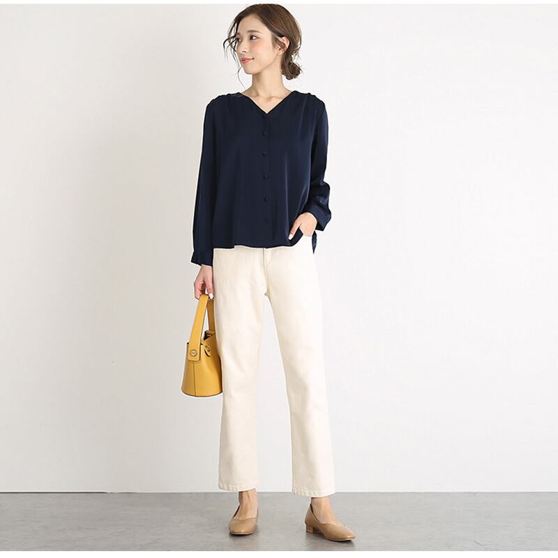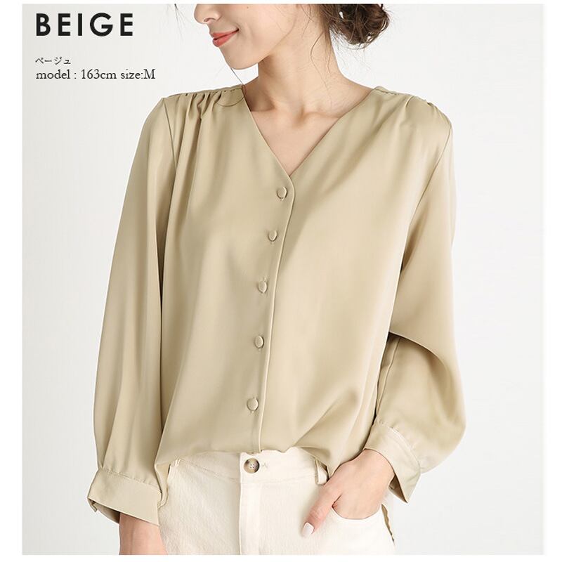 Vネックシフォンシャツ レディースホワイトルーズトップス 04200159584