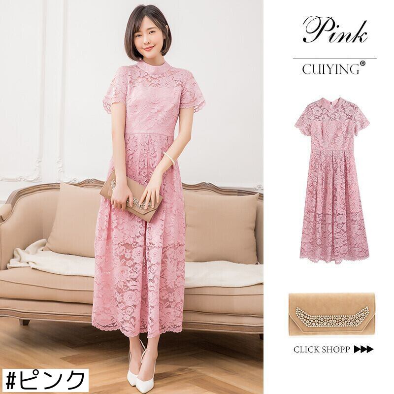 レーススカート 半袖スリーブハイウェストウェストワンピース ショート ハーフスリーブ エレガント ステッチ ウエスト ミドル丈 19780089156