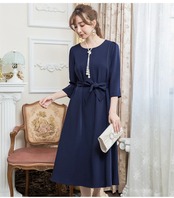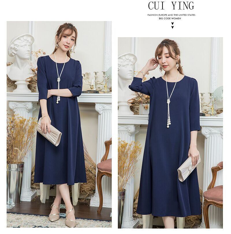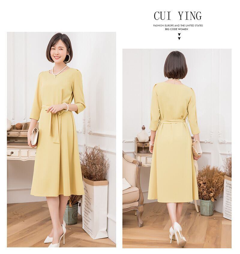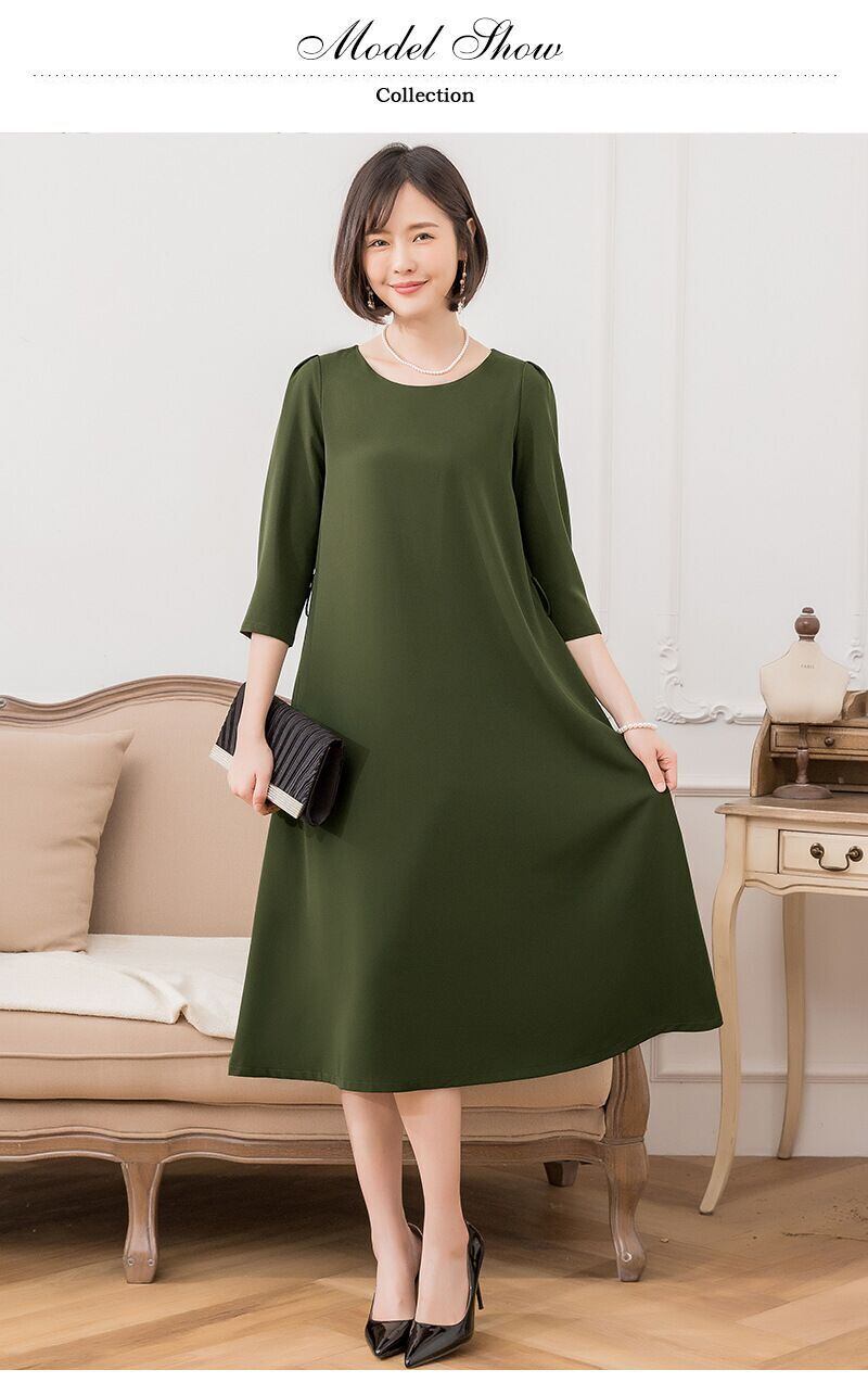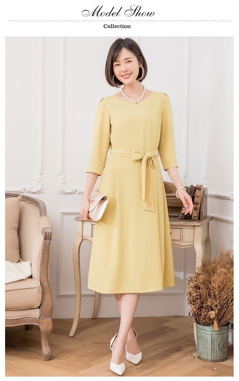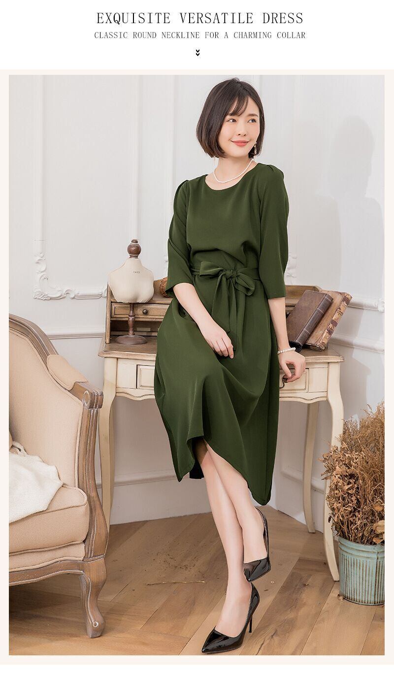 スプリング夏服スカート ソリッド カラーウェストルーズカジュアルワンピース 春物 夏物 Oネック ソリッドカラー ウエスト 19788534311