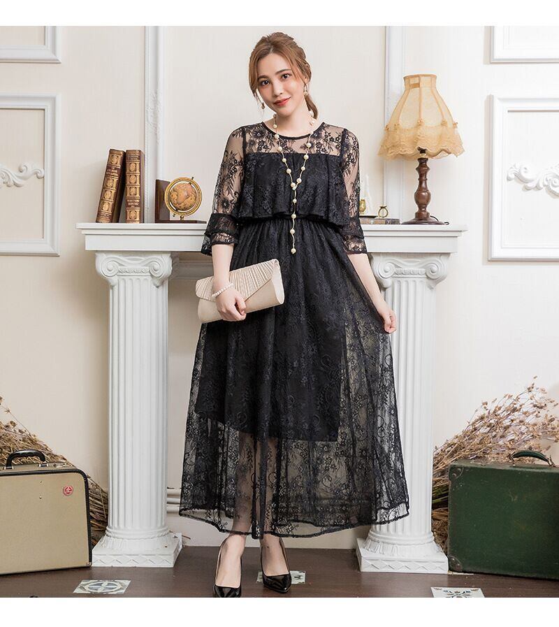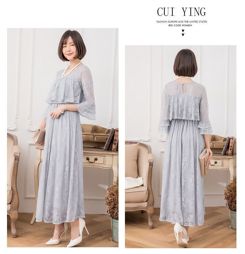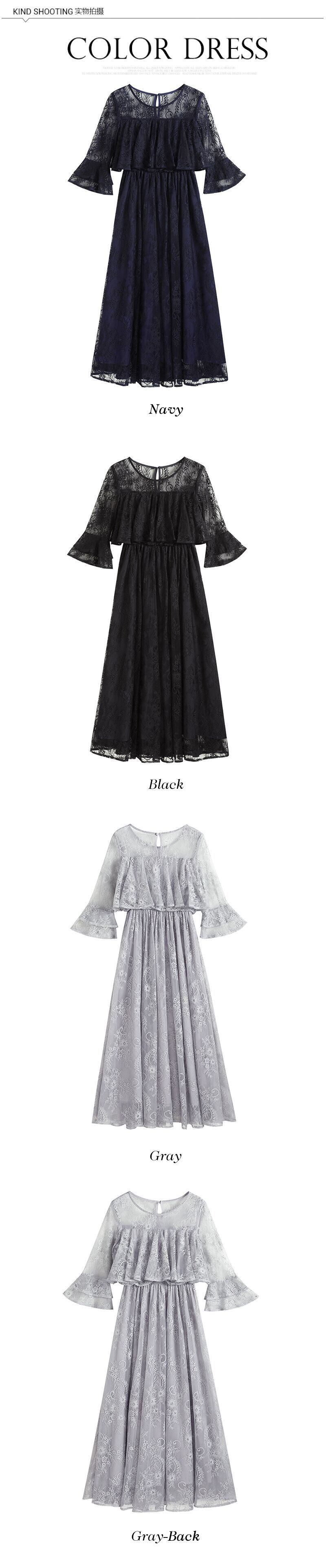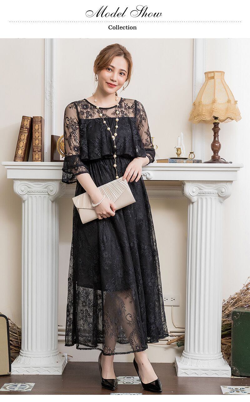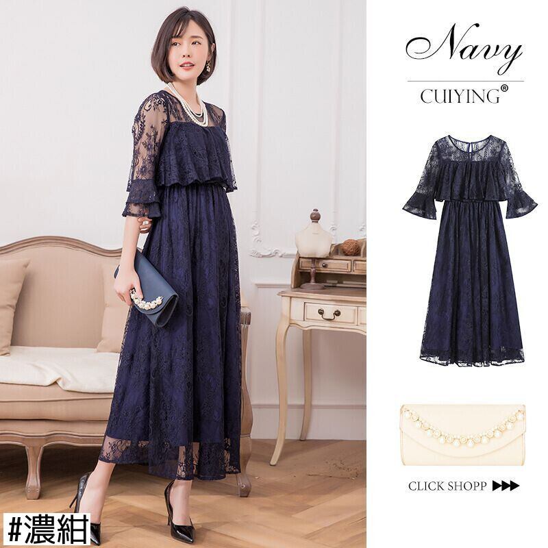 レーススリーブハイウェストウェストロングワンピース レッド エレガント ステッチ ウエスト 19787506755