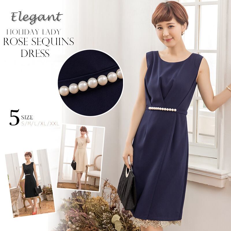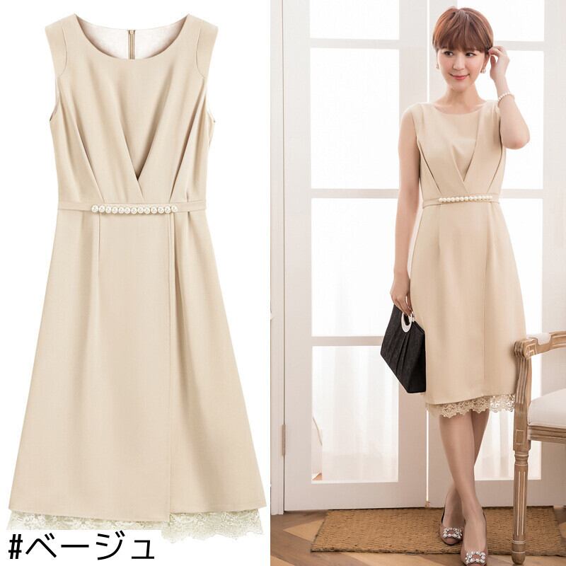 夏服ワンピースウェストパールスリムレース 大人ガーリー スウィート キュート カジュアル 夏物 真珠 ウエスト 19786862223