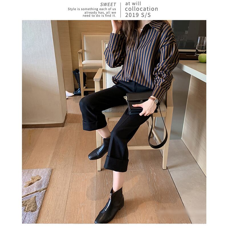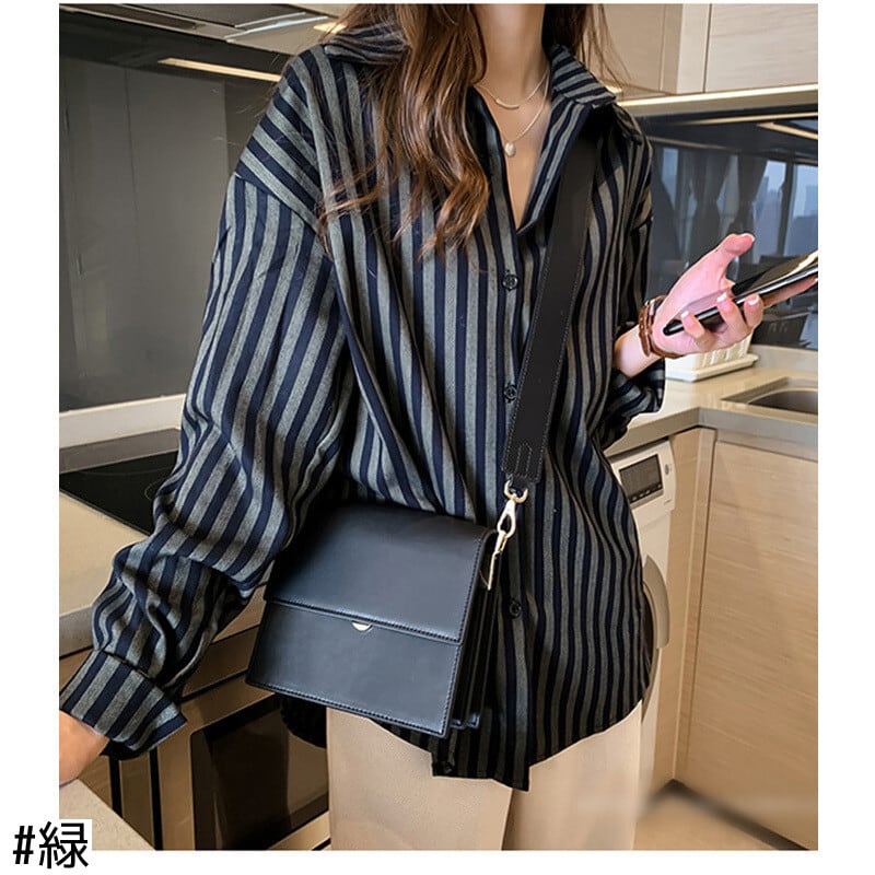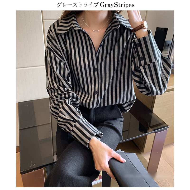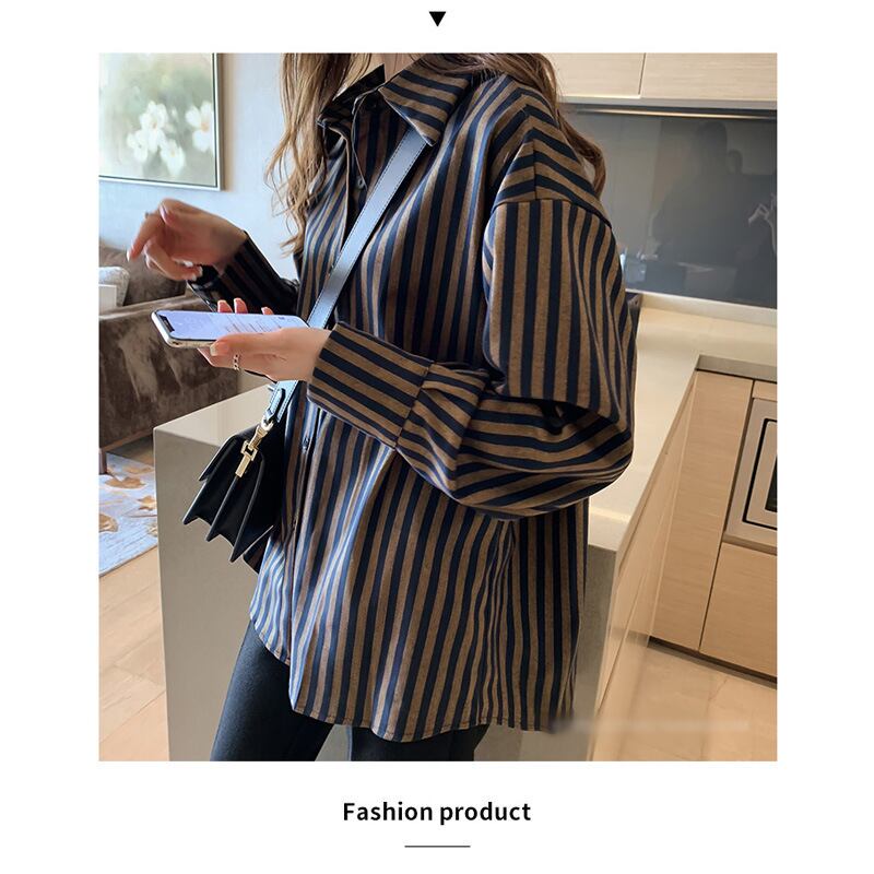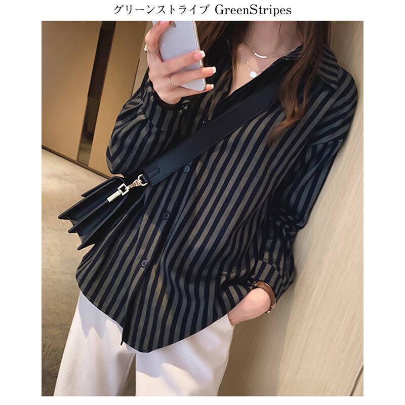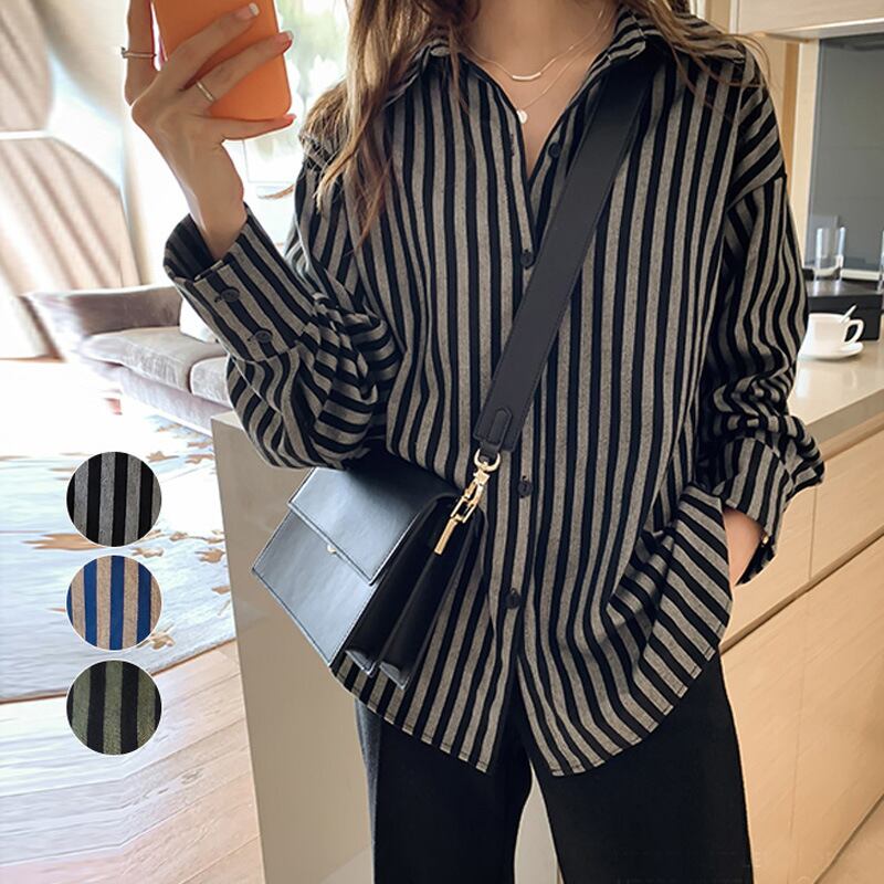 シャツ レディーススタンダードルーズストライプゆったり ロング レトロ 長袖 04200966307