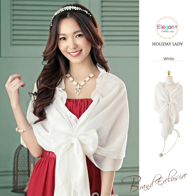 ワンピースショールレディースシフォンイブニングスカーフ リボン 19784017895