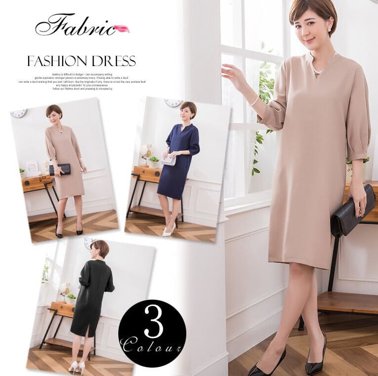 オータム薄手スタンドカラーカラーワンピーススカート ランタンスリーブ 秋物 19788543485