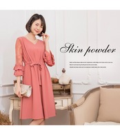 レーススリーブVネックハイウェストウェストワンピース ステッチ ウエスト 19781890686