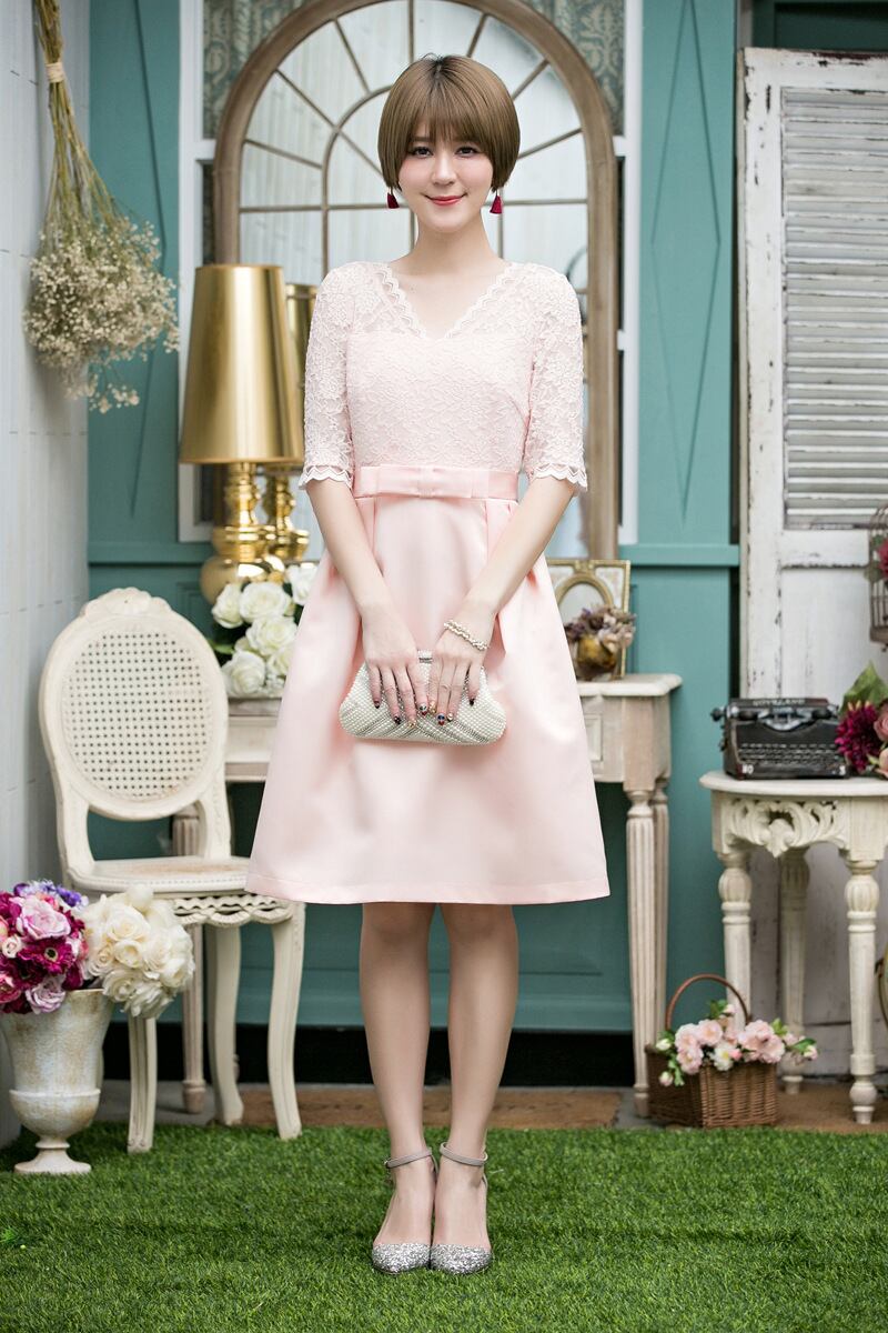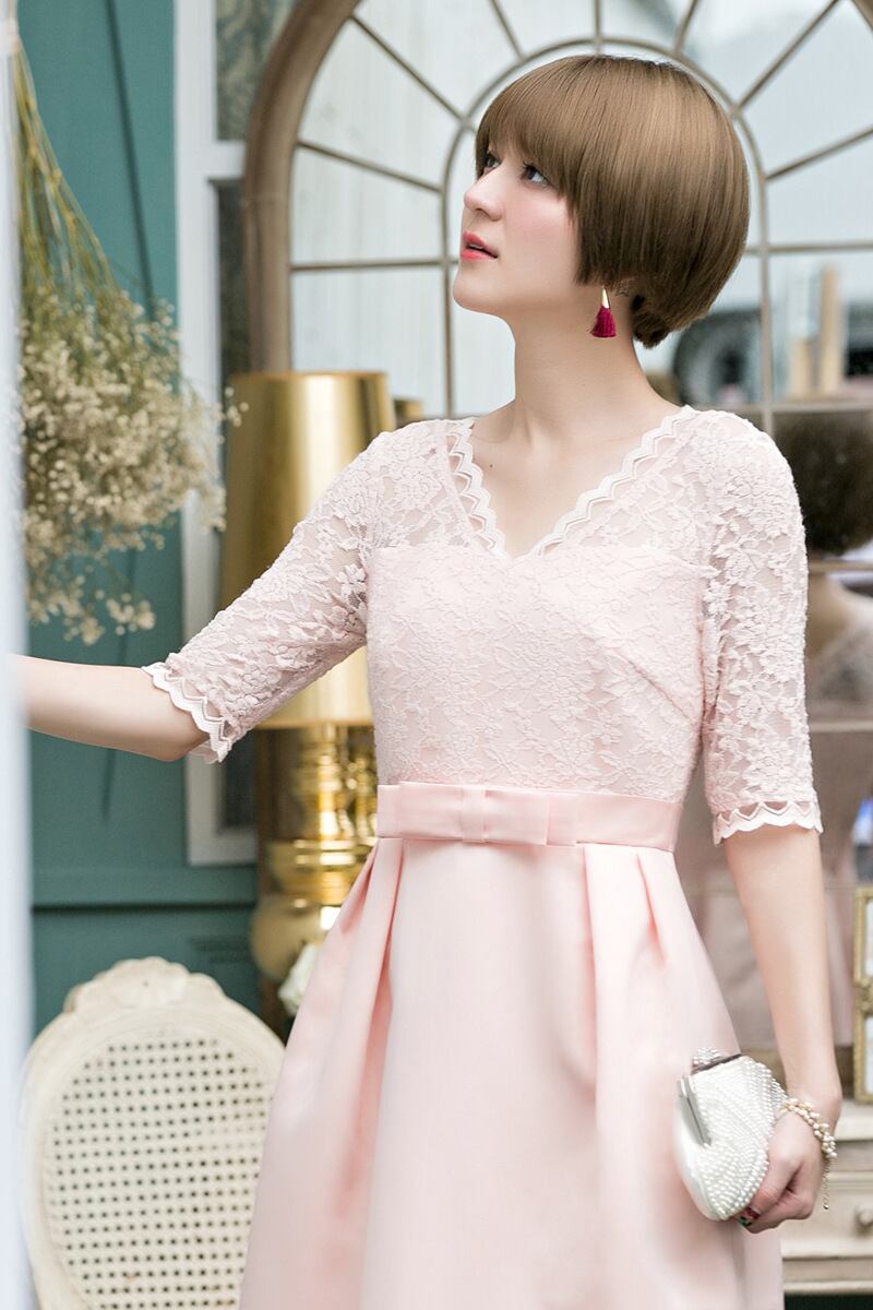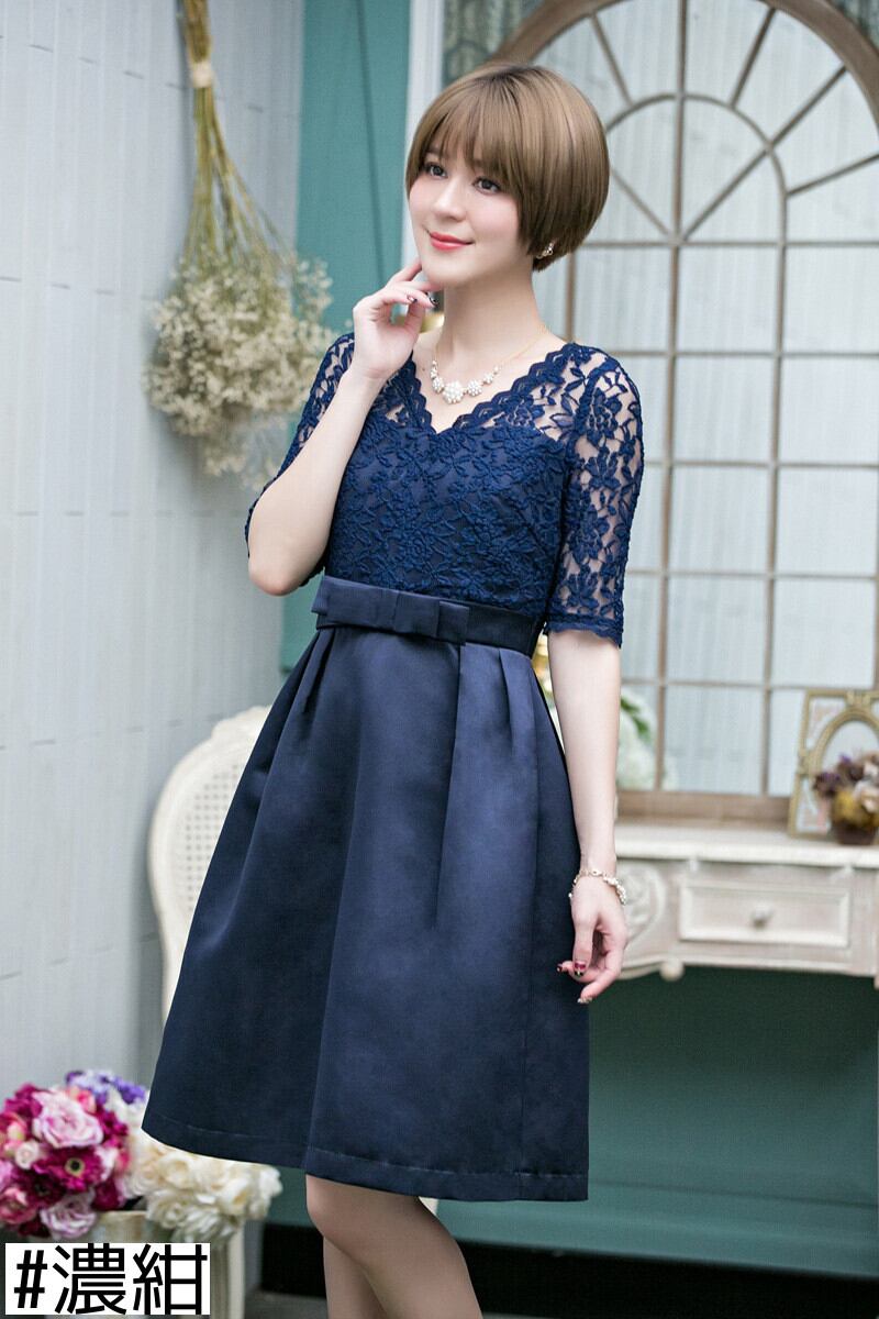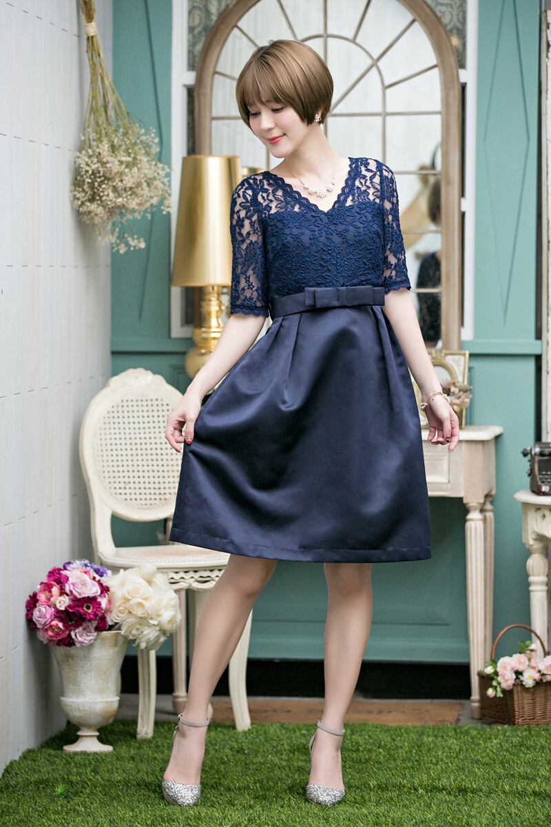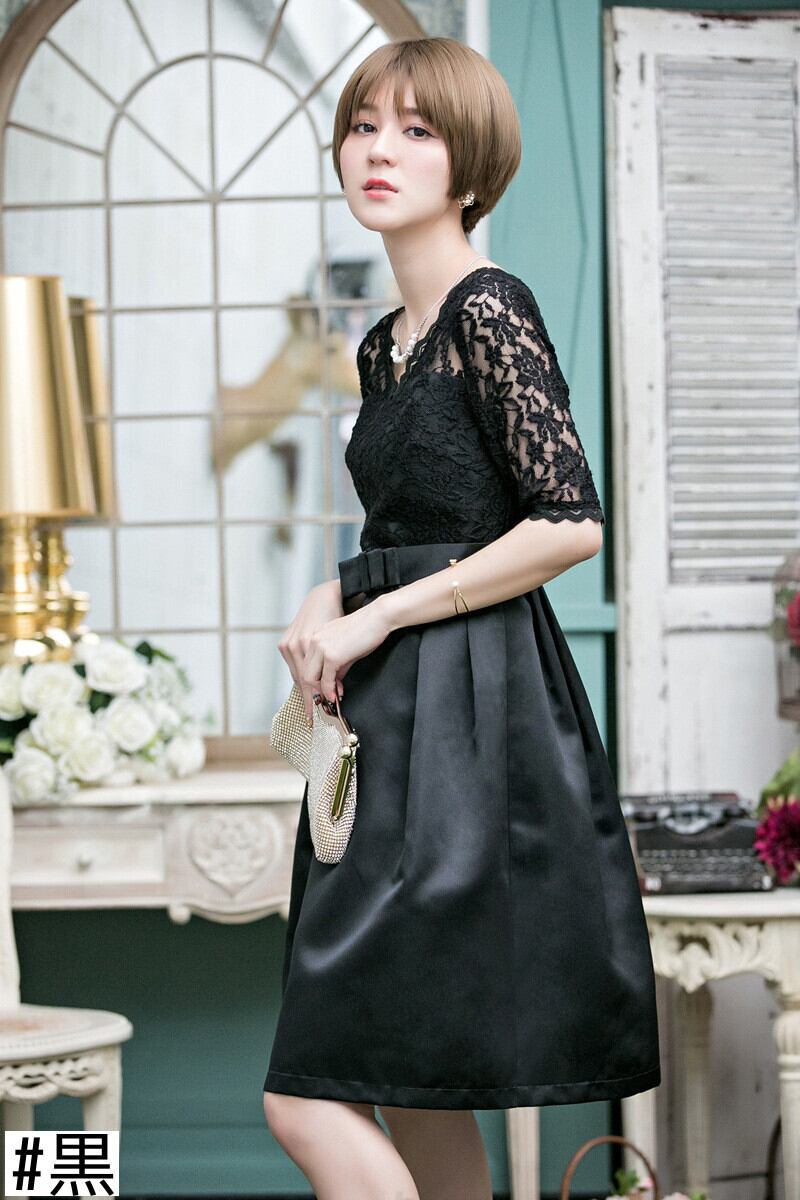オータムVネックレースワンピース薄手ブラックスカート エレガント 秋物 ステッチ 19782138324