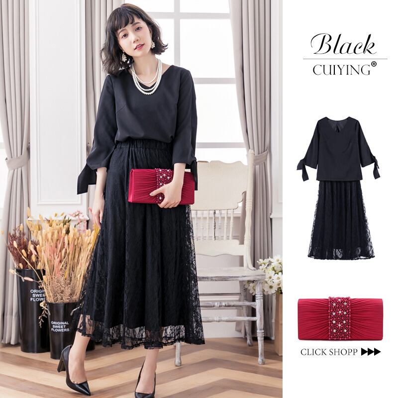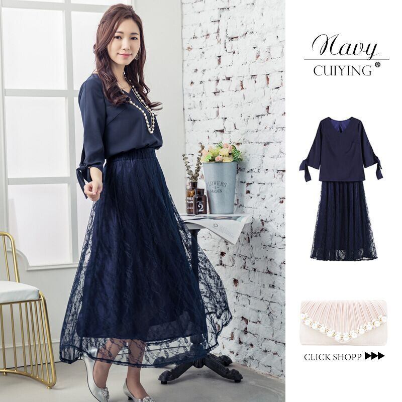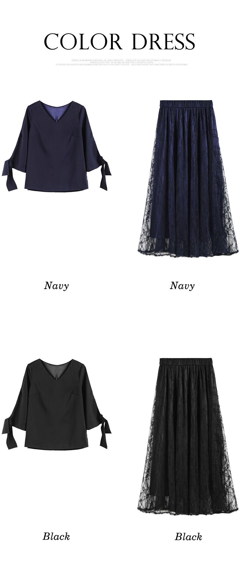 七部袖スリーブVネックシャツ レースジャカードワンピース薄手スカート 19781361409