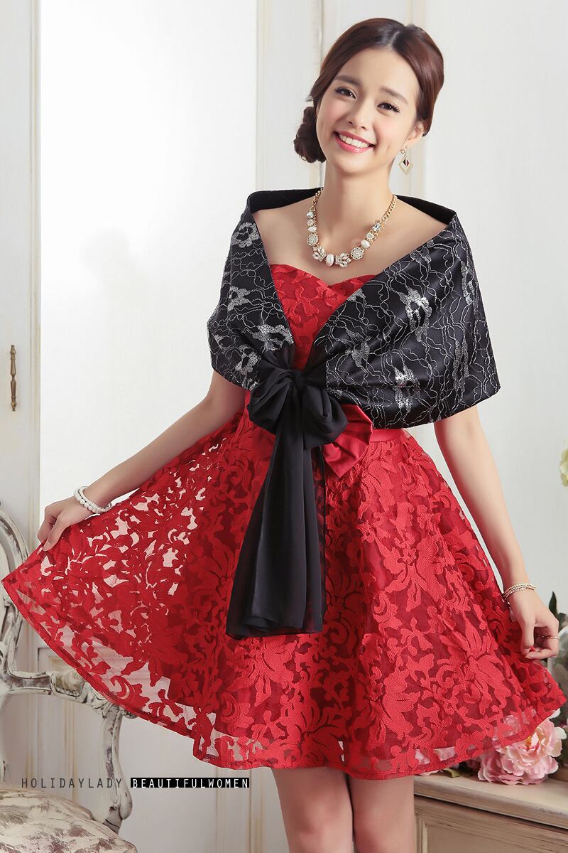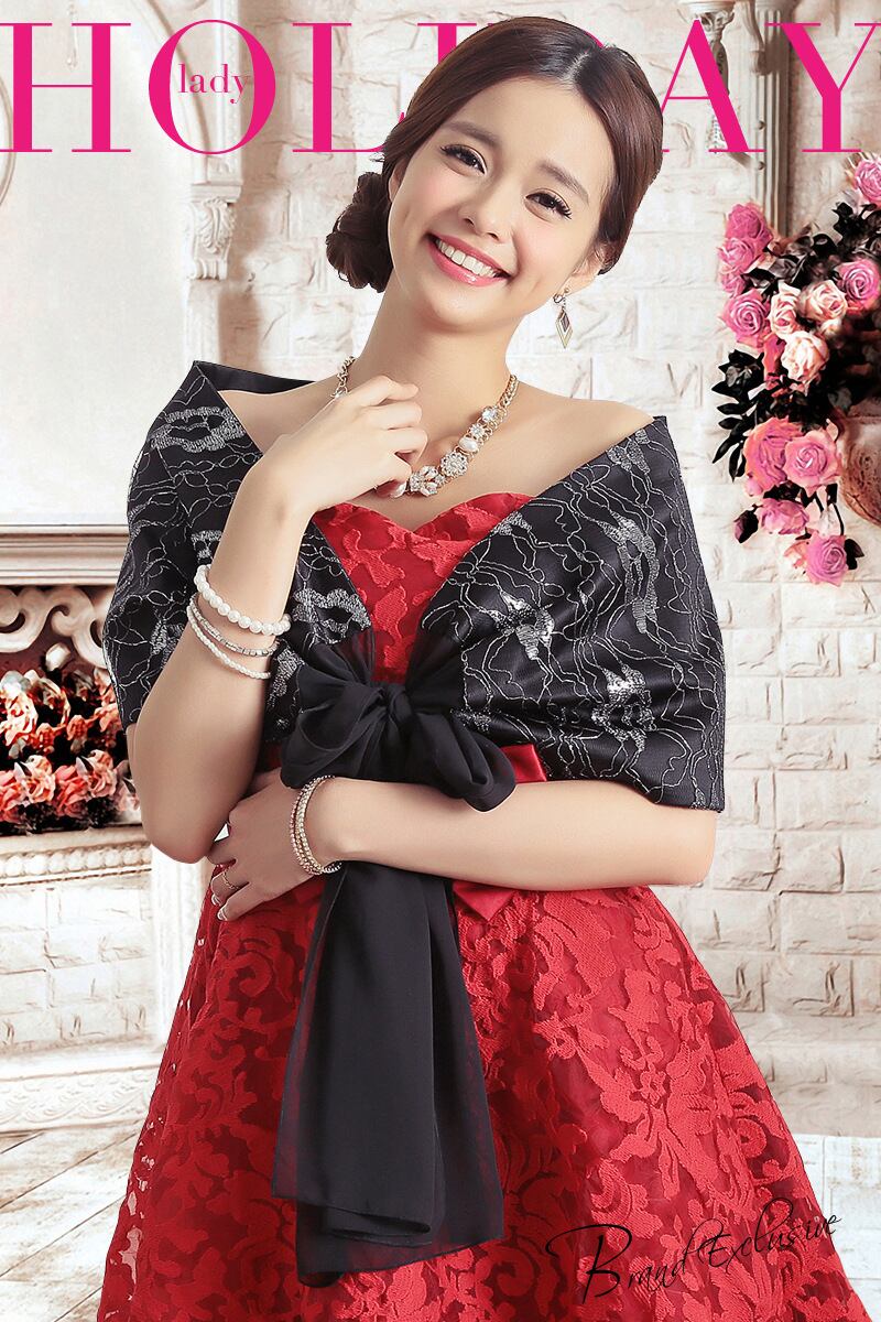 シルバーFlowerデザイン レースワンピースショール レッド 刺繍 大人ガーリー スウィート キュート カジュアル フラワーデザイン 銀 19788550362
