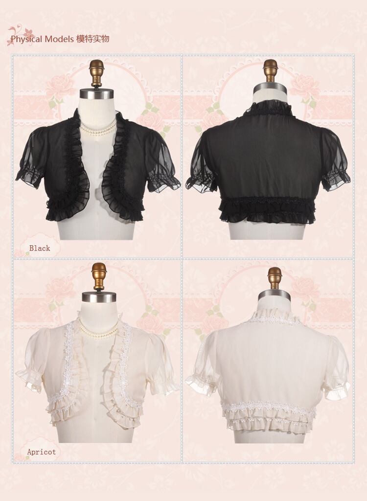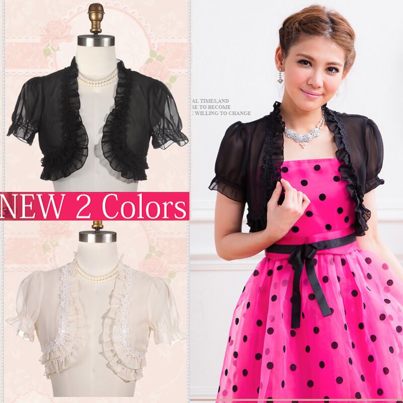 刺繍Flowerデザイン レースシフォン半袖スリーブショールコート ショート ハーフスリーブ フラワーデザイン 19783944072