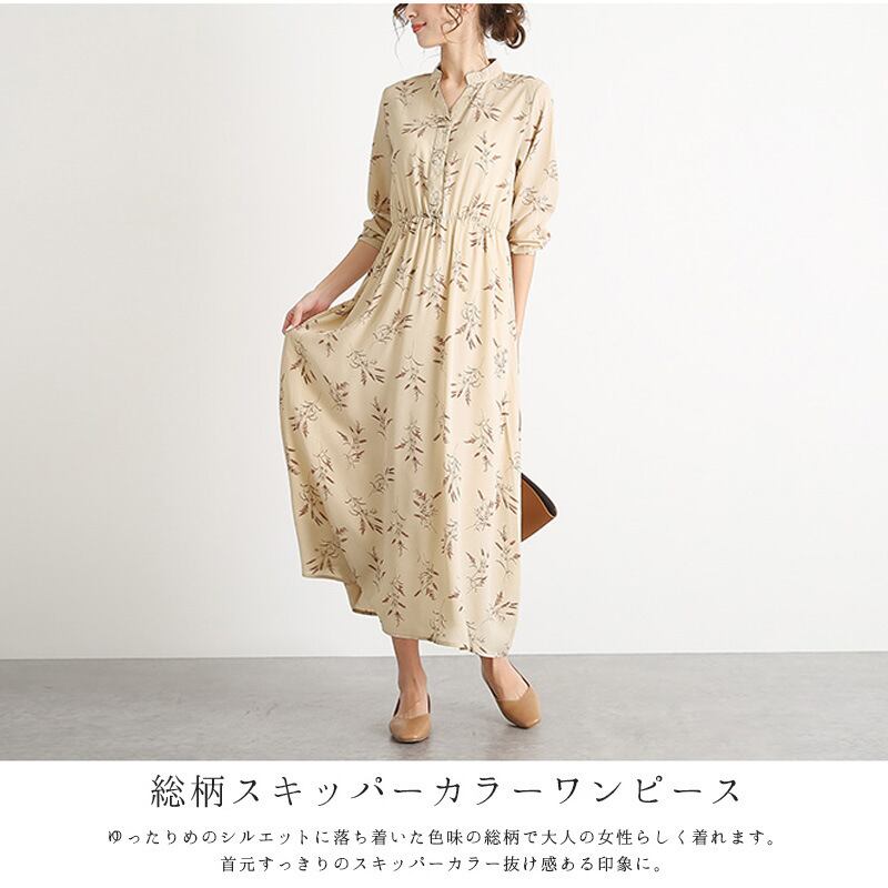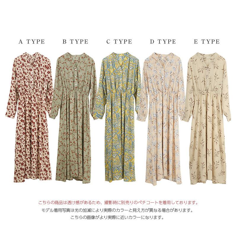 ボヘミアンフローラルワンピースレディースシフォンVネックスプリング夏服ウェスト 春物 夏物 花柄 ウエスト 04207805376