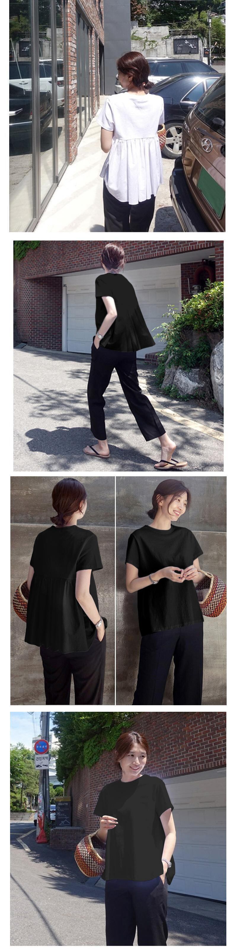夏服ラウンドネックショートプリーツ半袖スリーブTシャツ シャツ レディース ハーフスリーブ 夏物 Oネック ステッチ 04208642380
