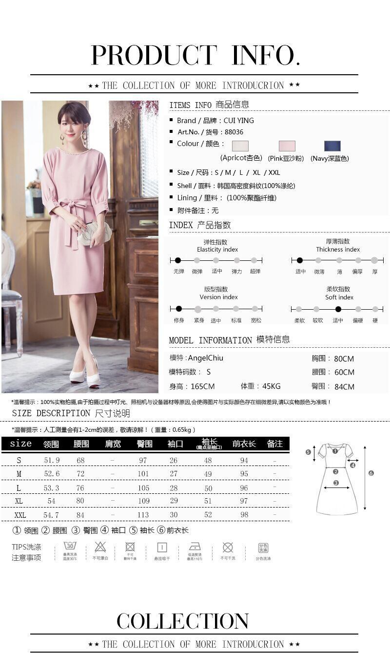 ラウンドネックスリムリボン薄手スリーブワンピース ランタンスリーブ Oネック 19786924684