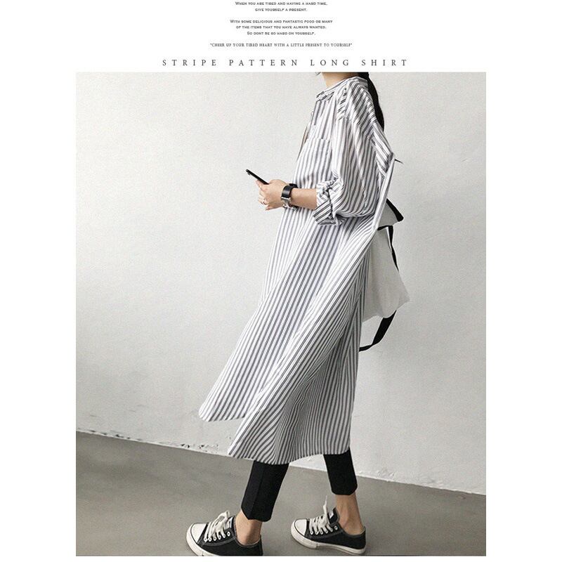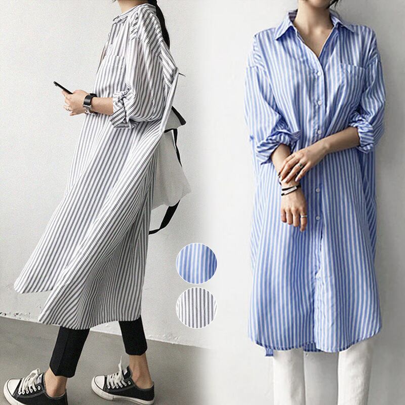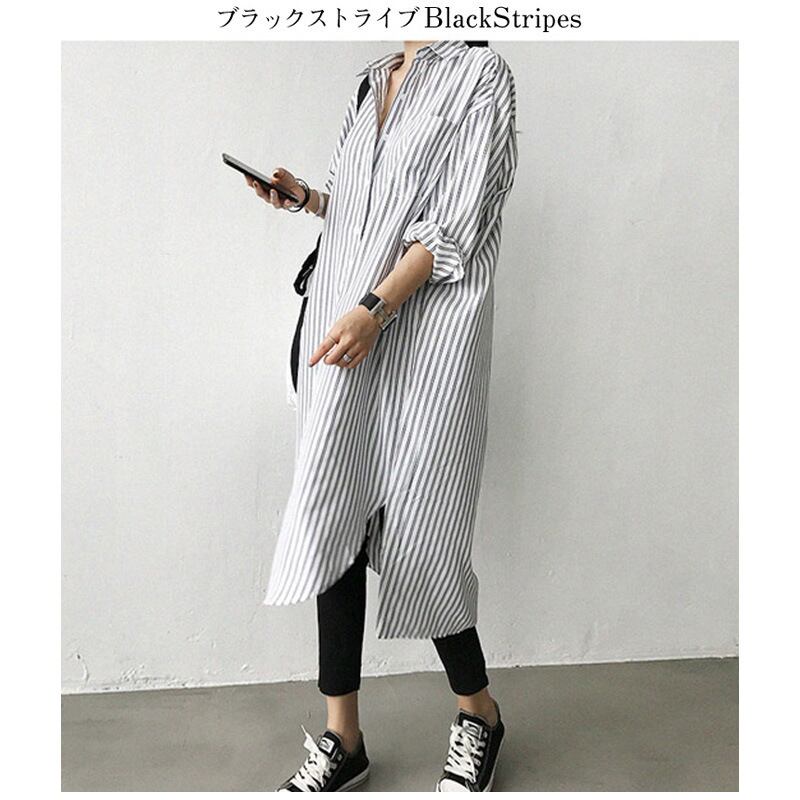 シャツ ルーズ長袖スリーブワンピースストライプ ロング 04206665190