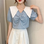 夏服シャツ Vネックレディース 大人ガーリー スウィート キュート カジュアル 夏物 04208965114
