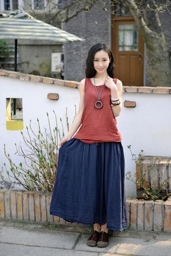 色:ネイビーブルーのスカート,さびた赤いスカート,ダークグリーンのスカート,トップの色にご注意ください