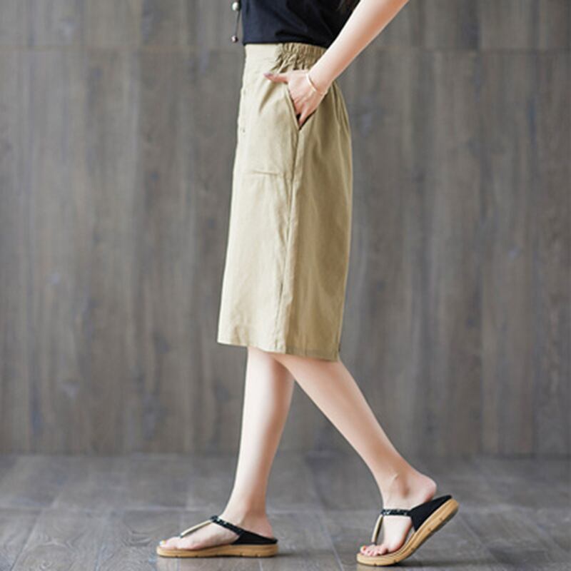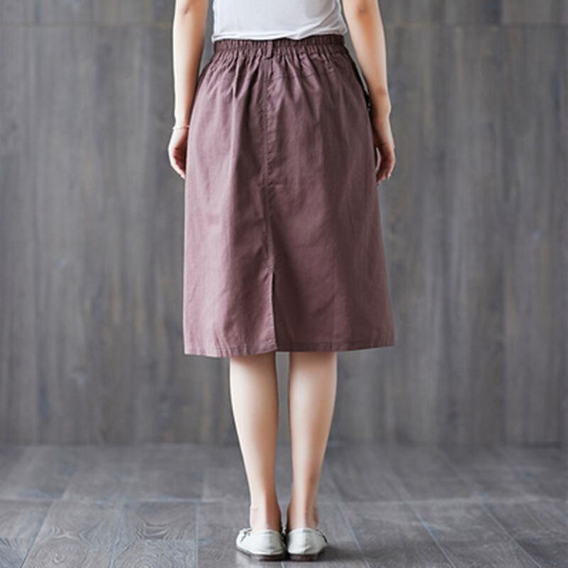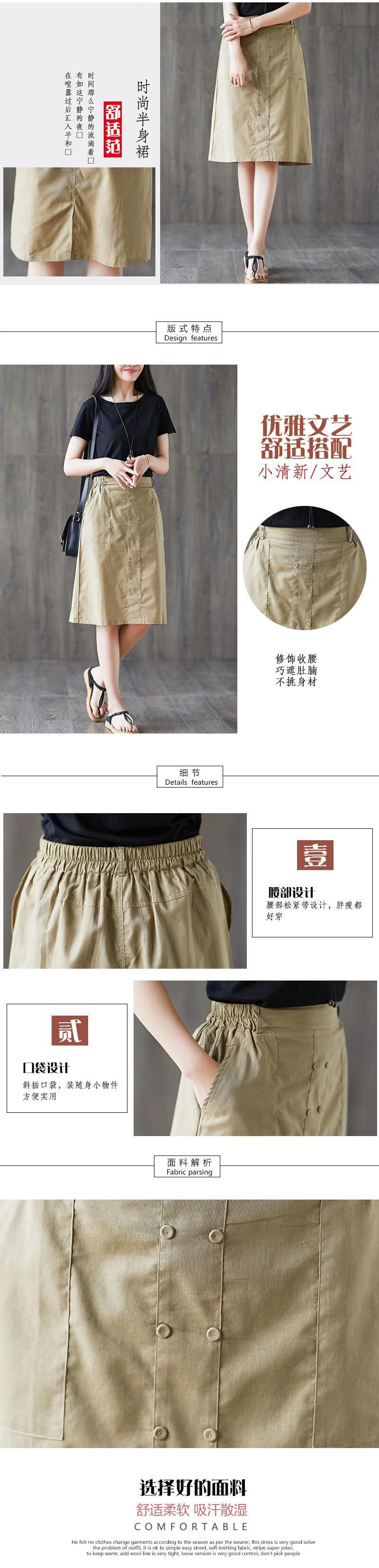 スカート スリム薄手ストレッチウェストカジュアル コットン エラスティック 伸縮 ウエスト ミドル丈 04201052705