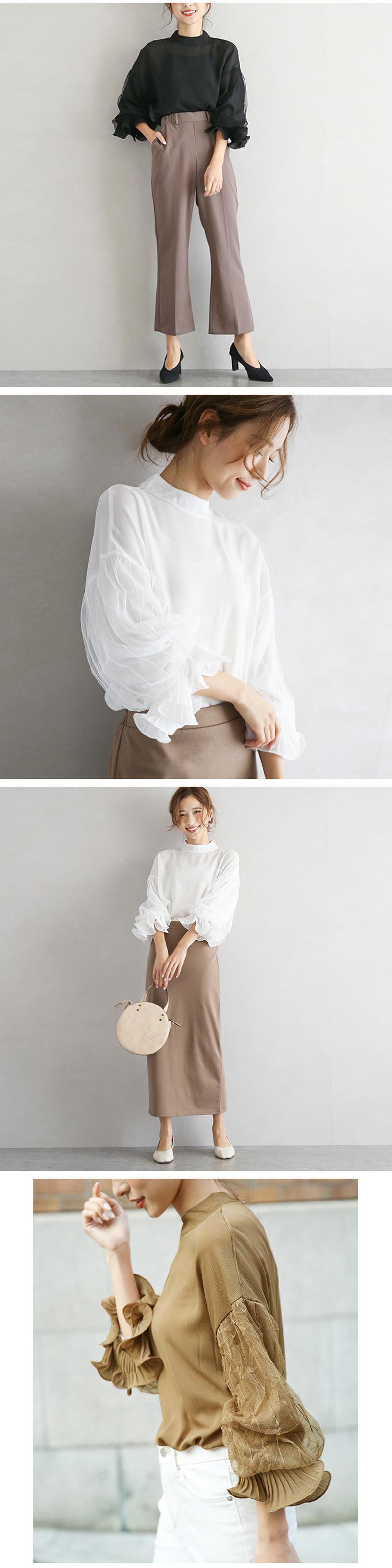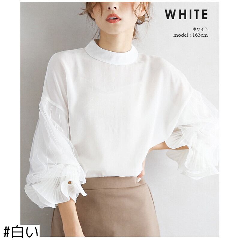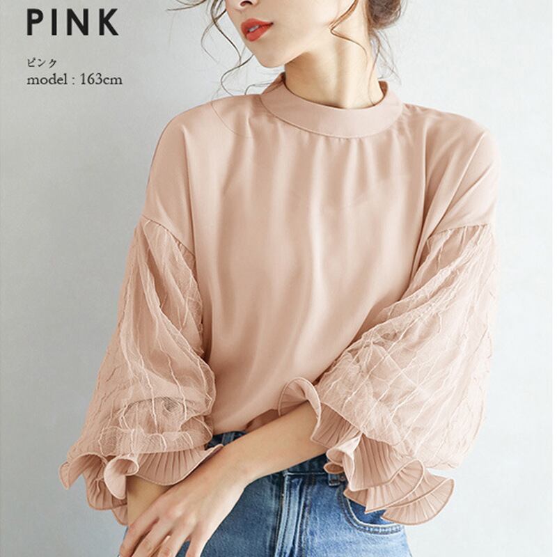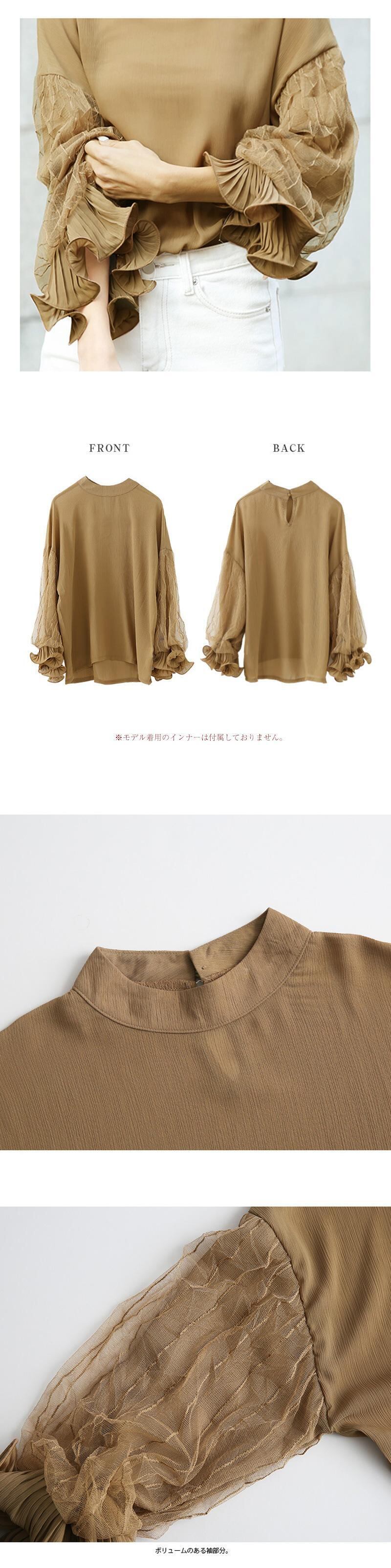 シャツ ルーズスリーブメッシュシフォンレディース ランタンスリーブ 04208661652