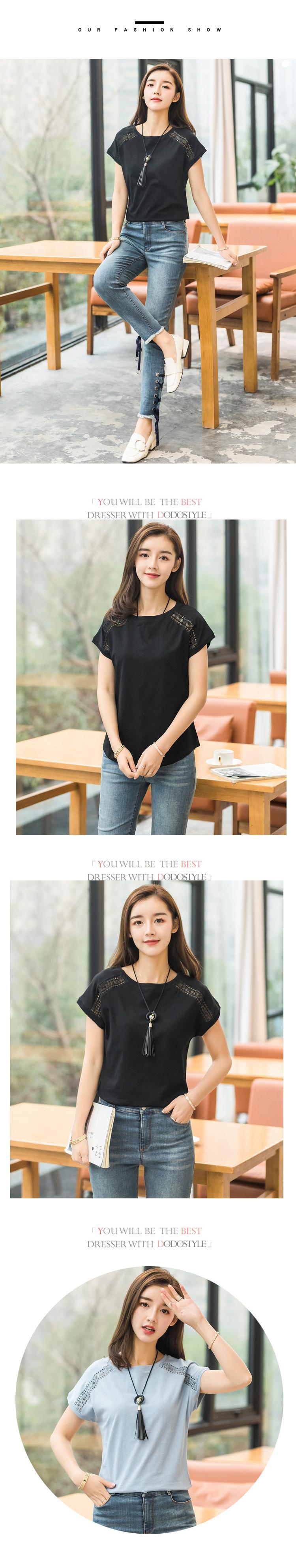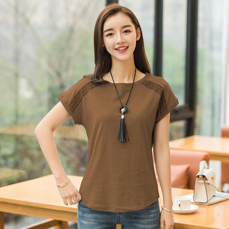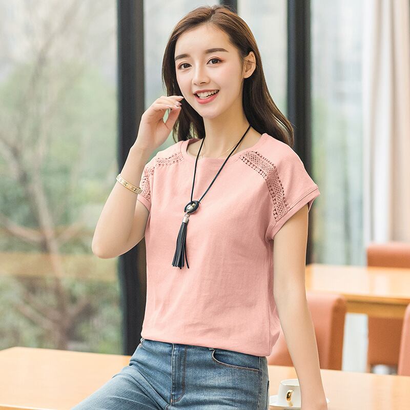 夏服ラウンドネックスリーブ半袖シャツ レディース ショート ハーフスリーブ 大きめサイズ 夏物 Oネック 04205373141