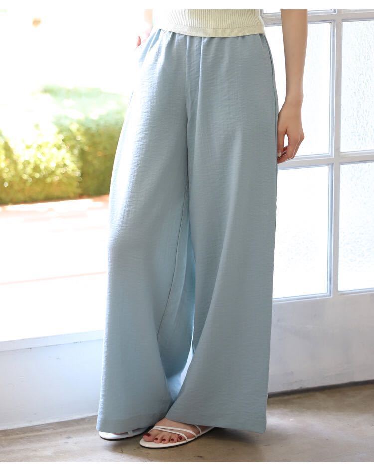 韓国ファッションスタイルソリッド カラーカジュアルストレッチウェストワイドレッグレディース エラスティック 伸縮 ワイドパンツ ソリッドカラー ウエスト 04206167099