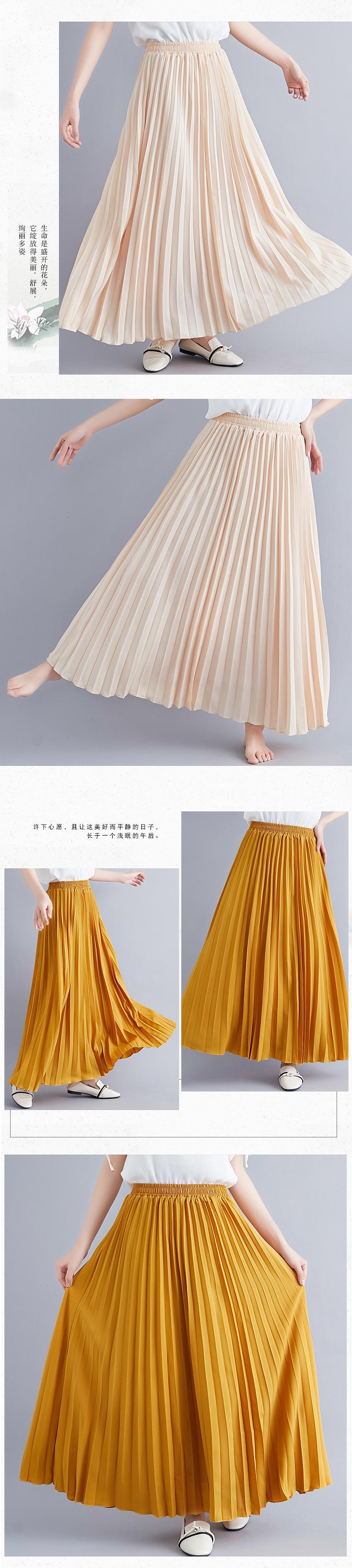 韓国ファッションソリッド カラーロングプリーツスカート ハイウェストウェストレディースストレッチ エラスティック 伸縮 大きめサイズ ソリッドカラー スタイル ウエスト 04201496974