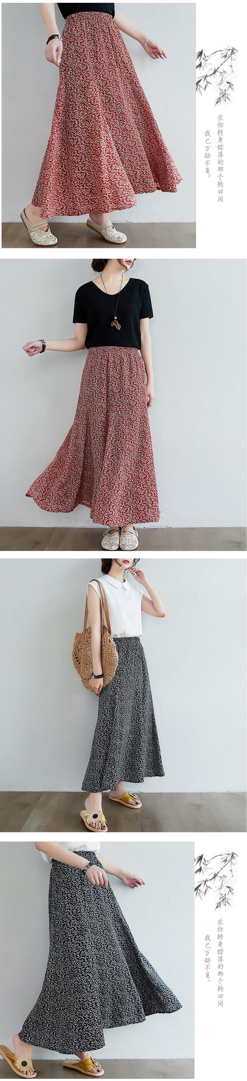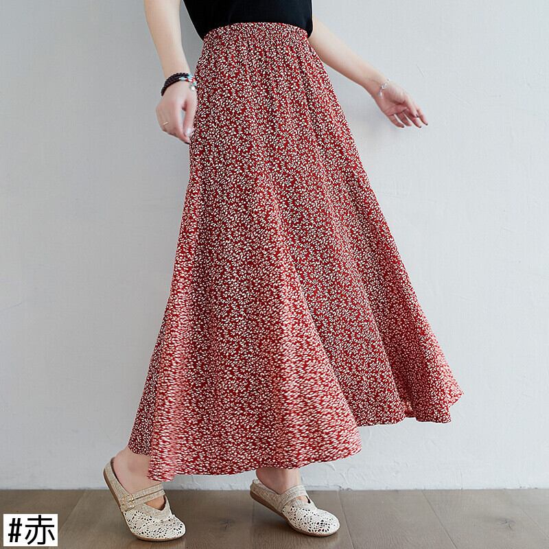 夏服ロング韓国ファッションスタイルルーズスリムフローラル 大きめサイズ 夏物 花柄 スカート 04207651368