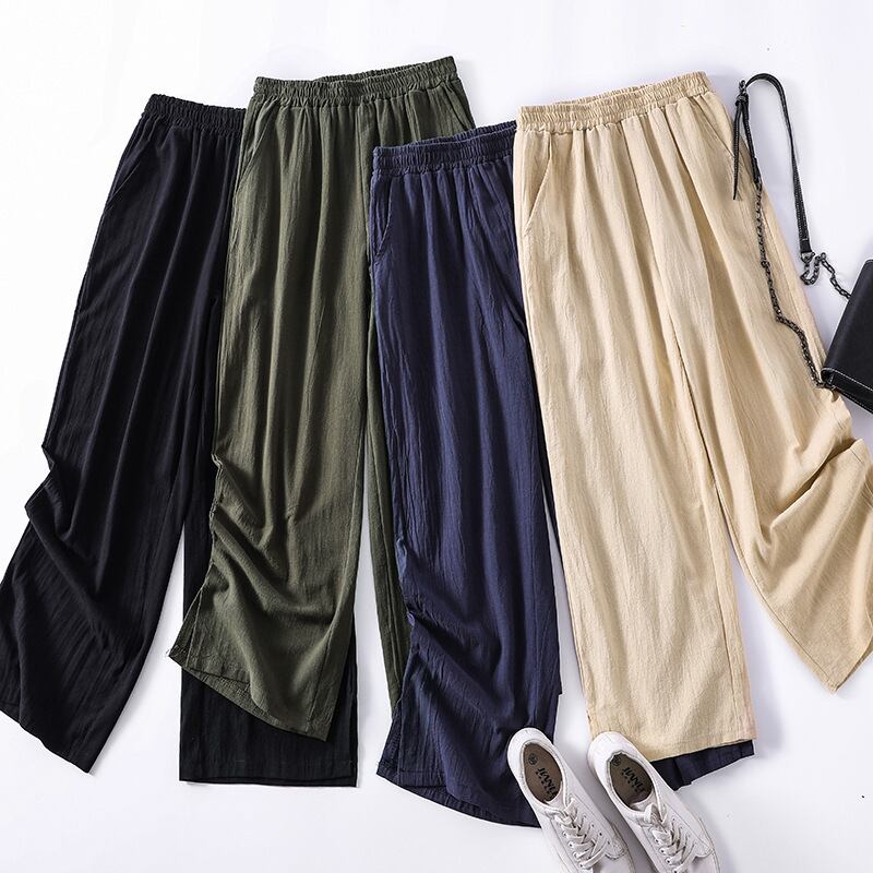ルーズワイドレッグパンツ 薄手サイドハイウェストウェストレディース コットン 大きめサイズ ワイドパンツ ウエスト 04200294673