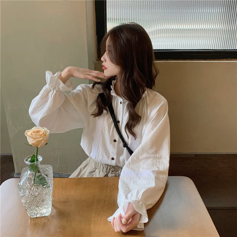 ホワイトシャツ レディーススタンダードスリーブトップス 夏服 ロング ランタンスリーブ レトロ 夏物 長袖 Marchs46792419663