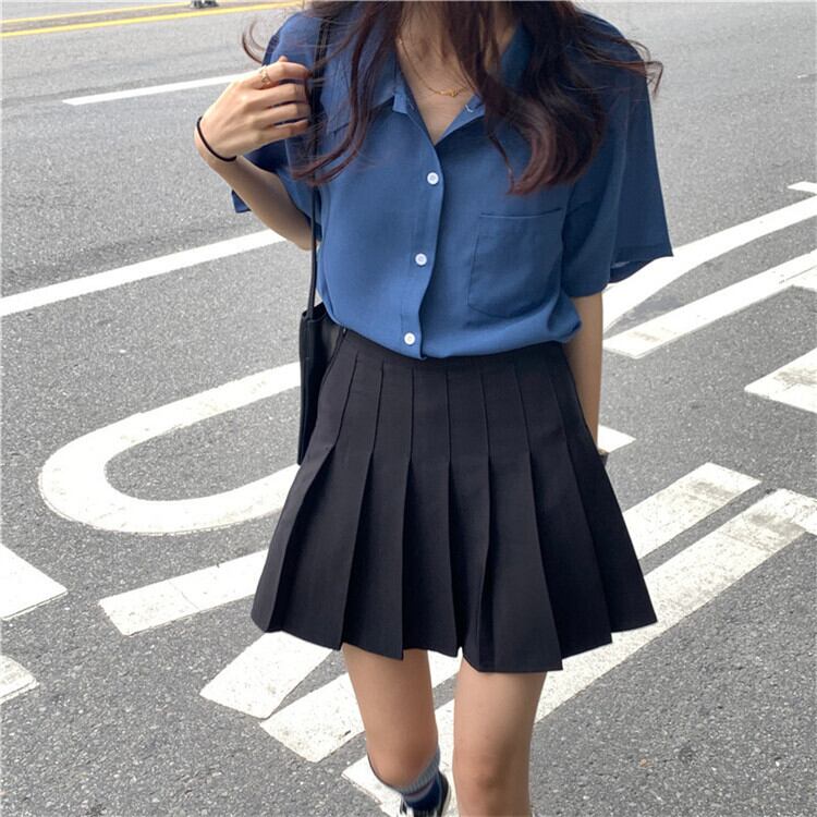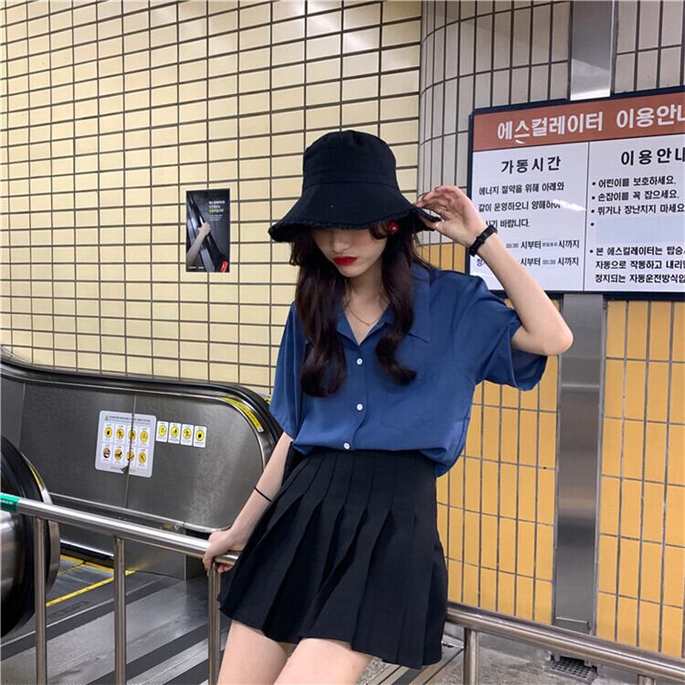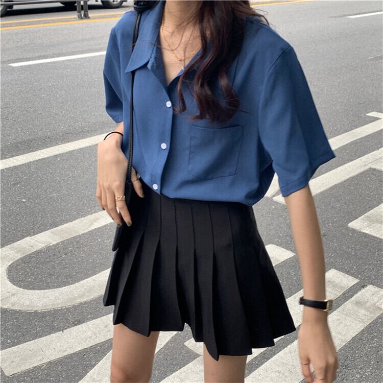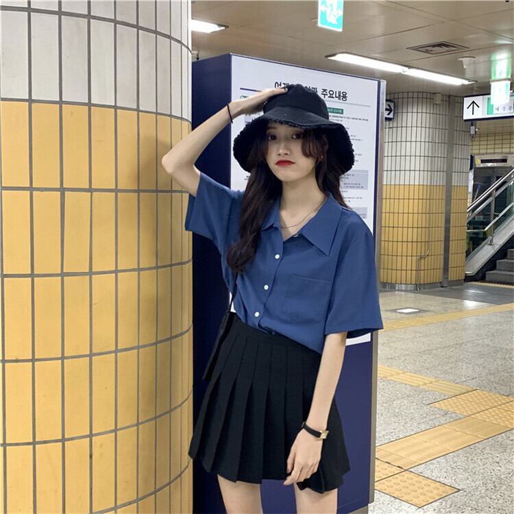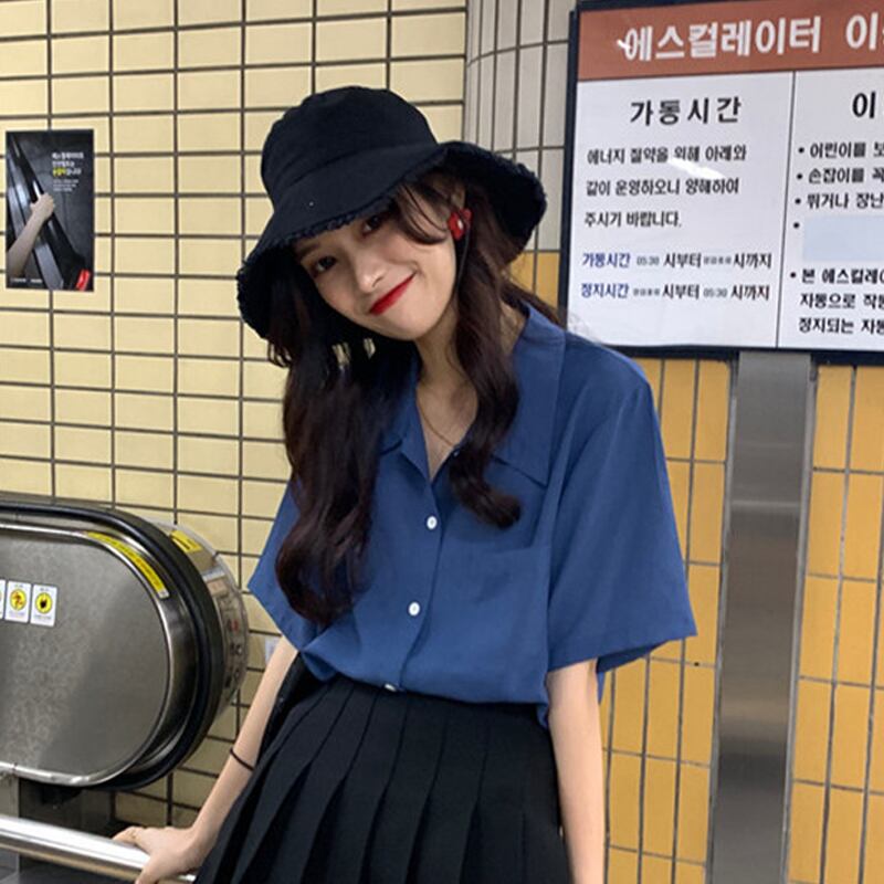 夏服韓国ファッションブルーカラールーズシャツ トレンドブラウス 夏物 スタイル Marchs5564808687