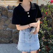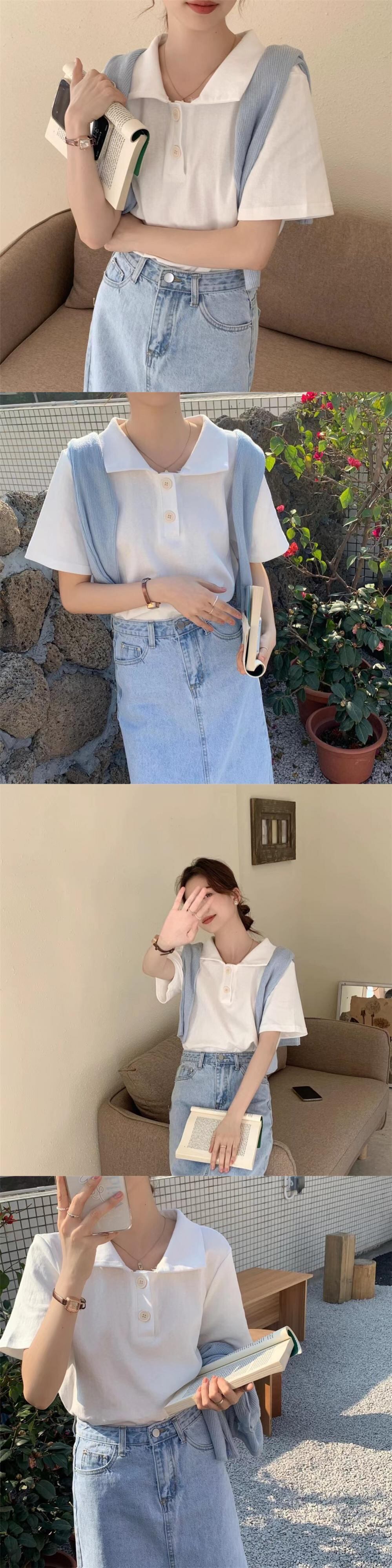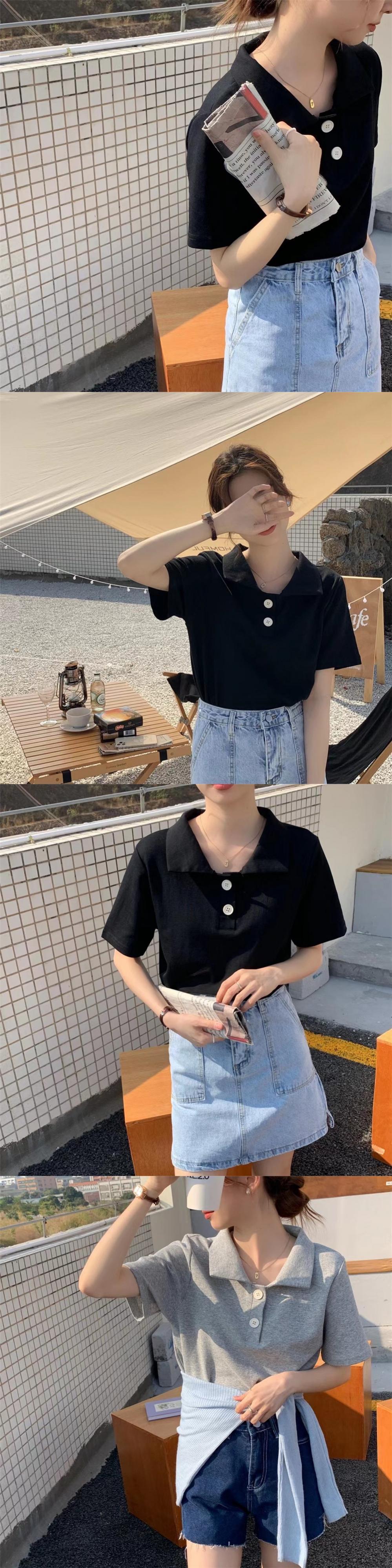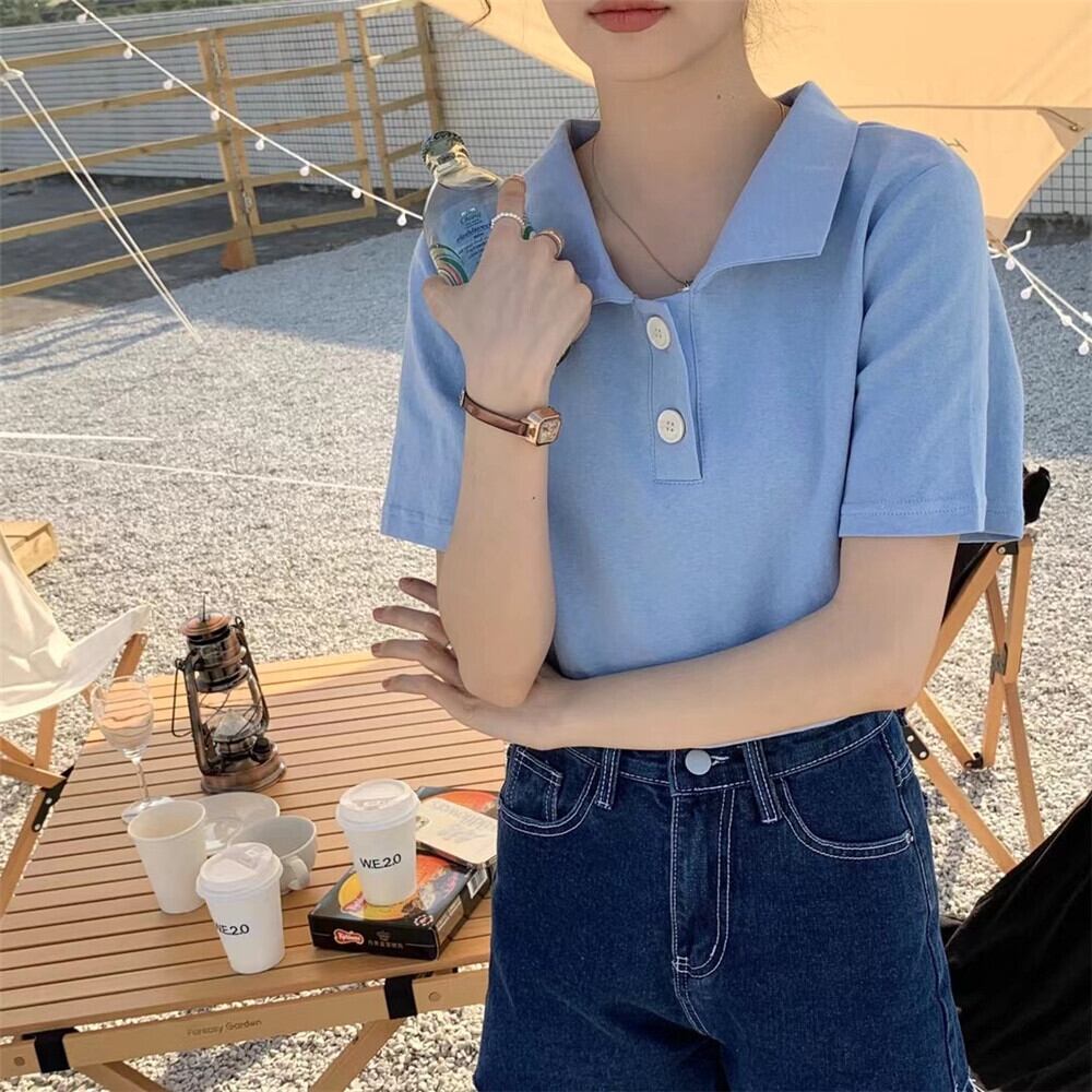 カラー韓国ファッショントレンドブレストルーズソリッド カジュアルTシャツトップス レディース ソリッドカラー Marchs37634141252