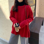 オレンジセーター スプリングルーズニットトップス 春物 Marchs25603185417