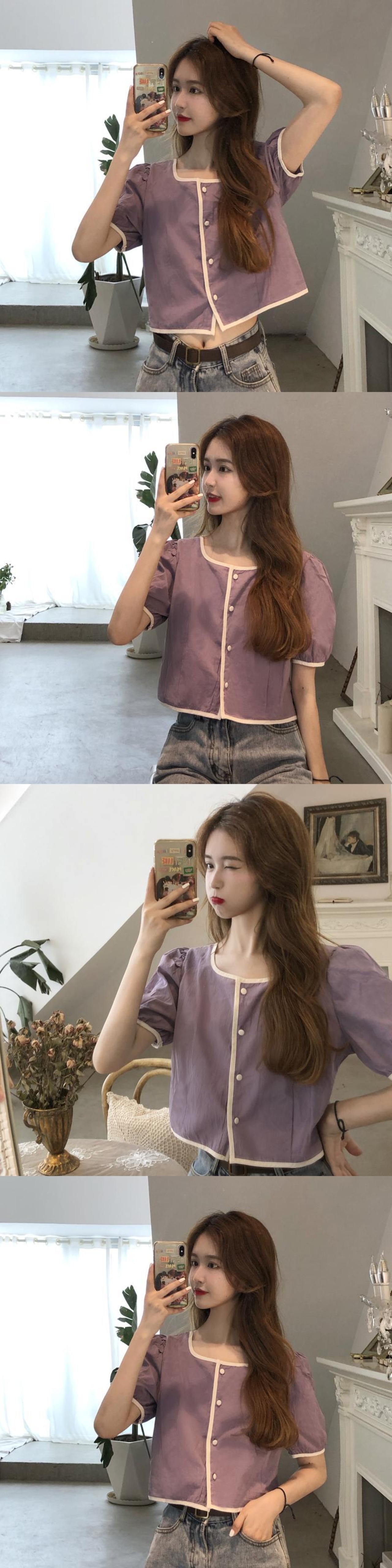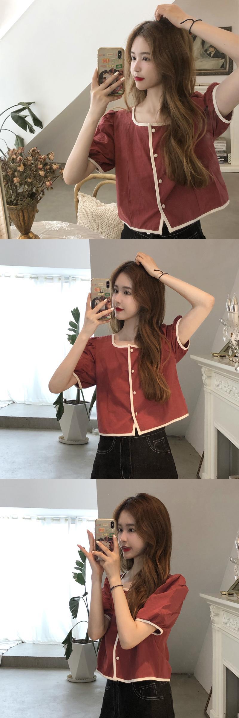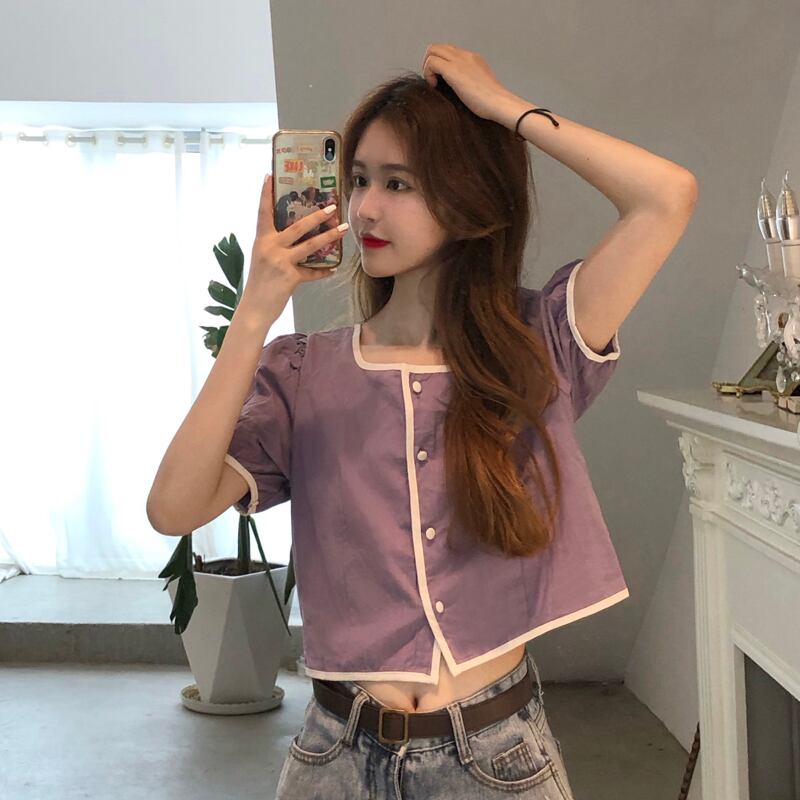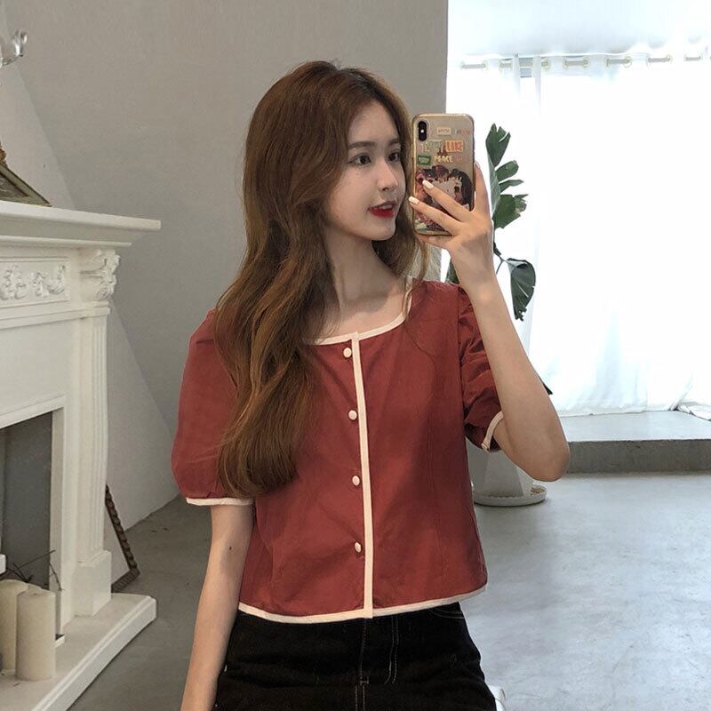 スタンダードカラーショートルーズスリーブトップス 夏服シャツ レトロ 夏物 スクウェア Marchs44069710320