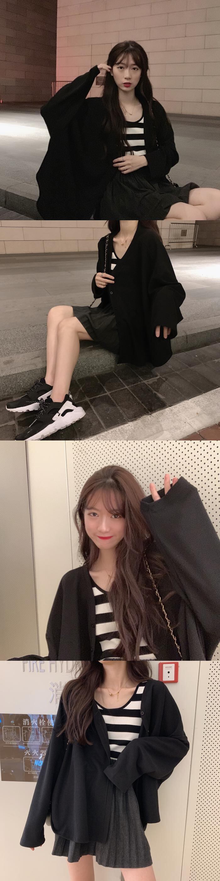 レディースブラックジャケット スプリング秋物スタイル韓国ファッションルーズニットカーディガンセーター 春物 オータム Marchs69297278565