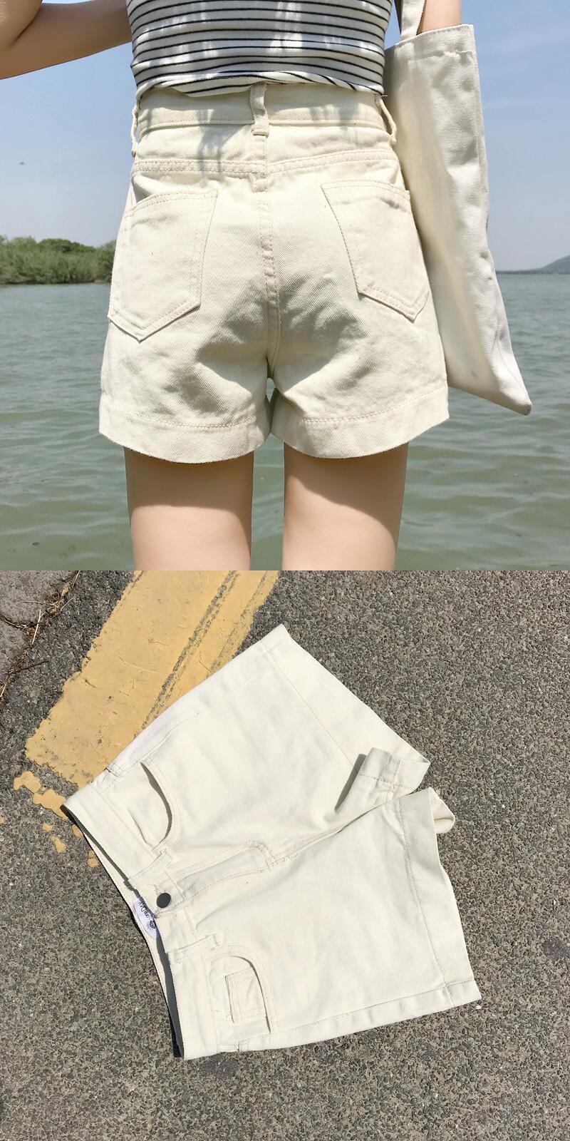 夏服韓国ファッションワイドレッグパンツ ホワイトハイウェストウェストショーツ レディーストレンド 夏物 ワイドパンツ スタイル ウエスト Marchs83216015658