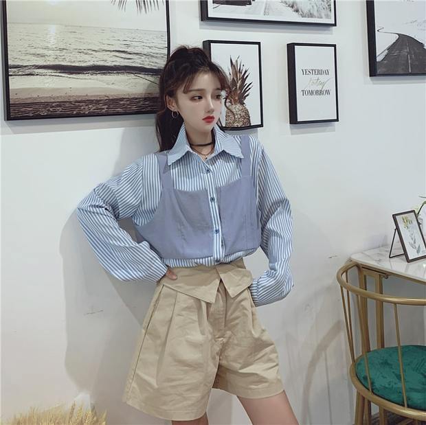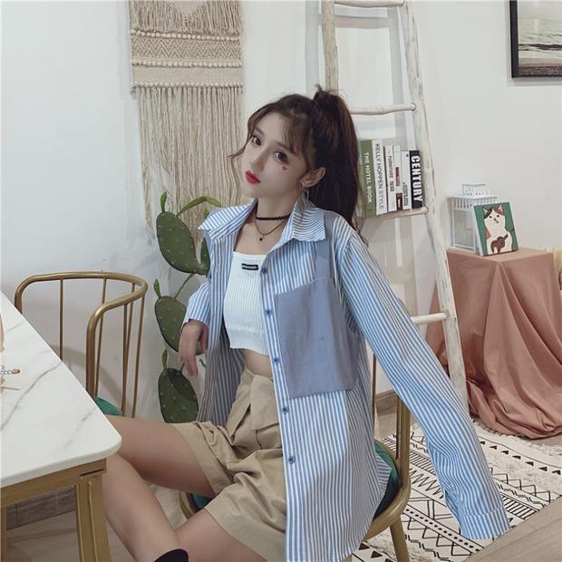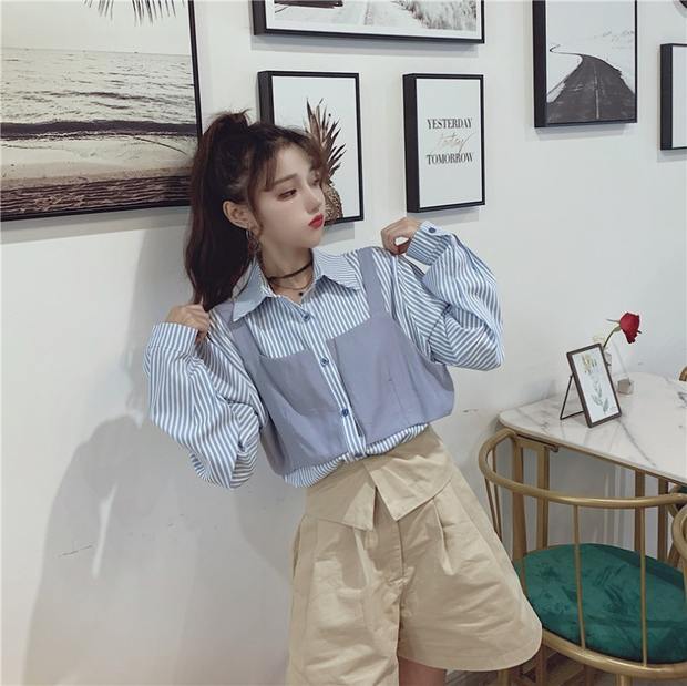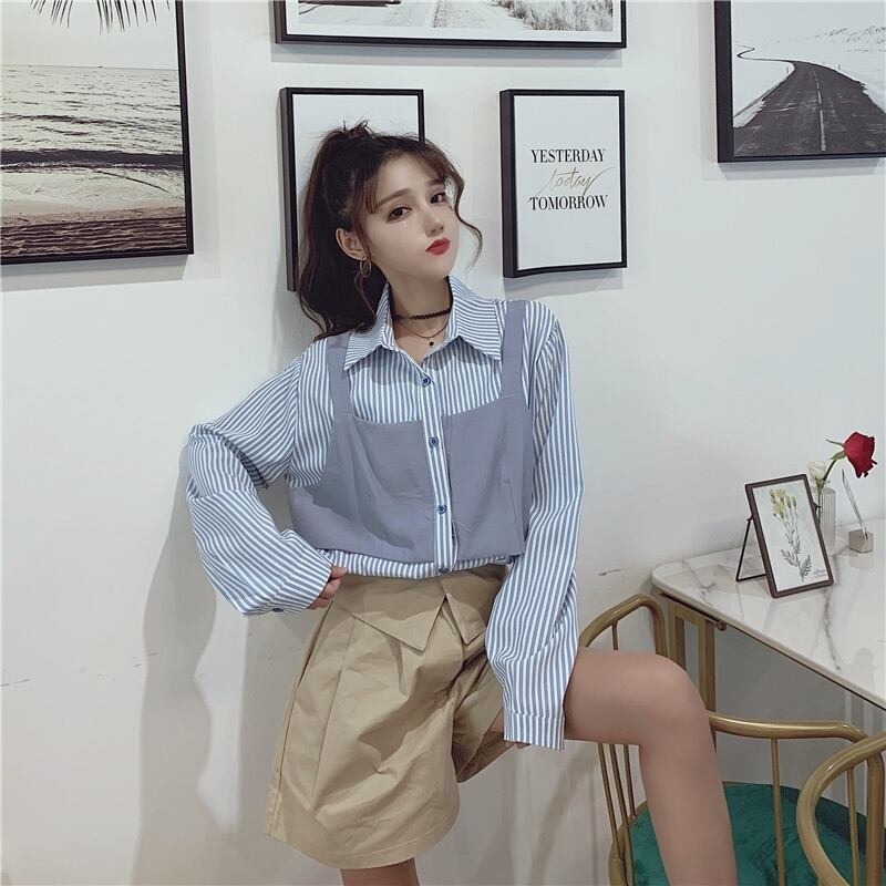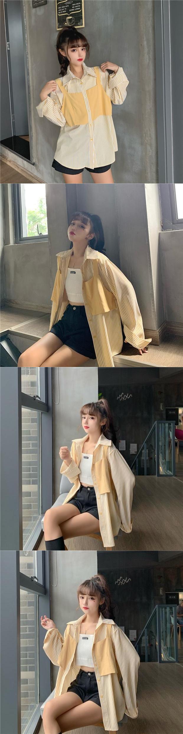 ストライプシャツ スプリングスタンダードブラウス ロング レッド レトロ 春物 長袖 Marchs41785280724