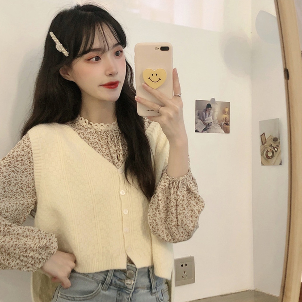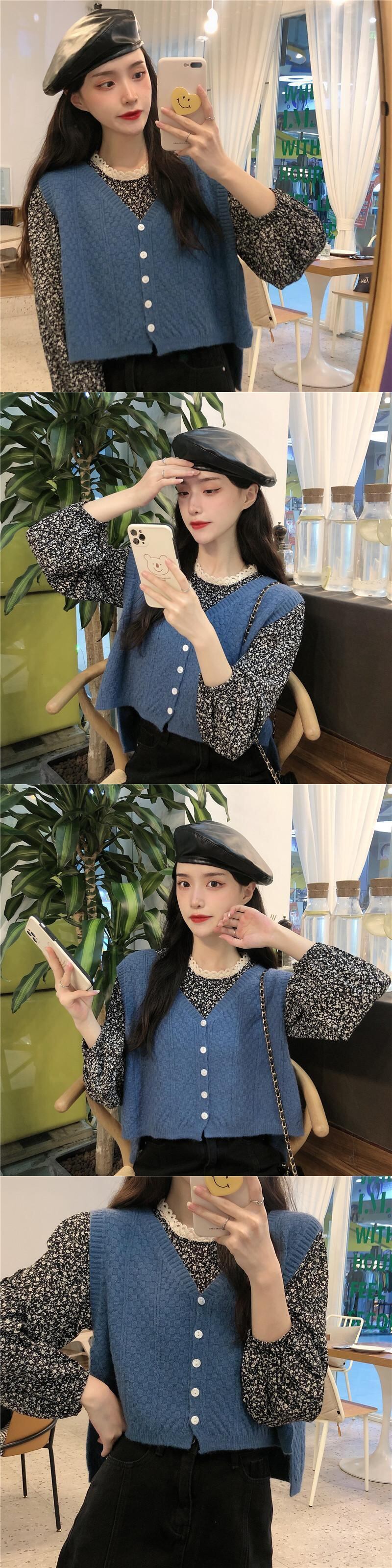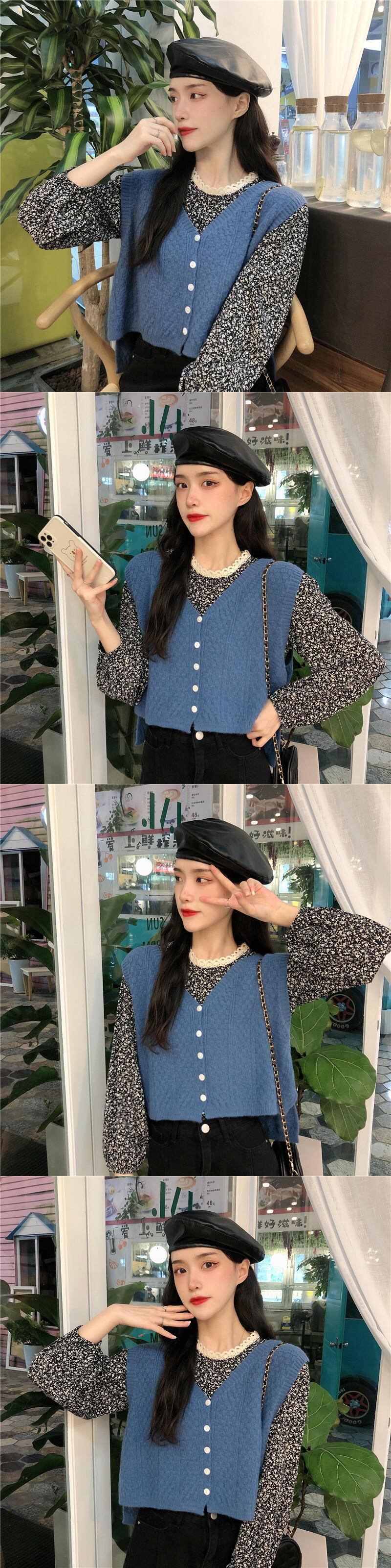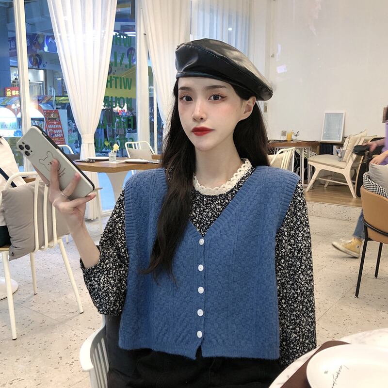色:青いシャツワンピース,ワンピースアプリコットシャツ,ブルーベストワンピース,アプリコットベストワンピース