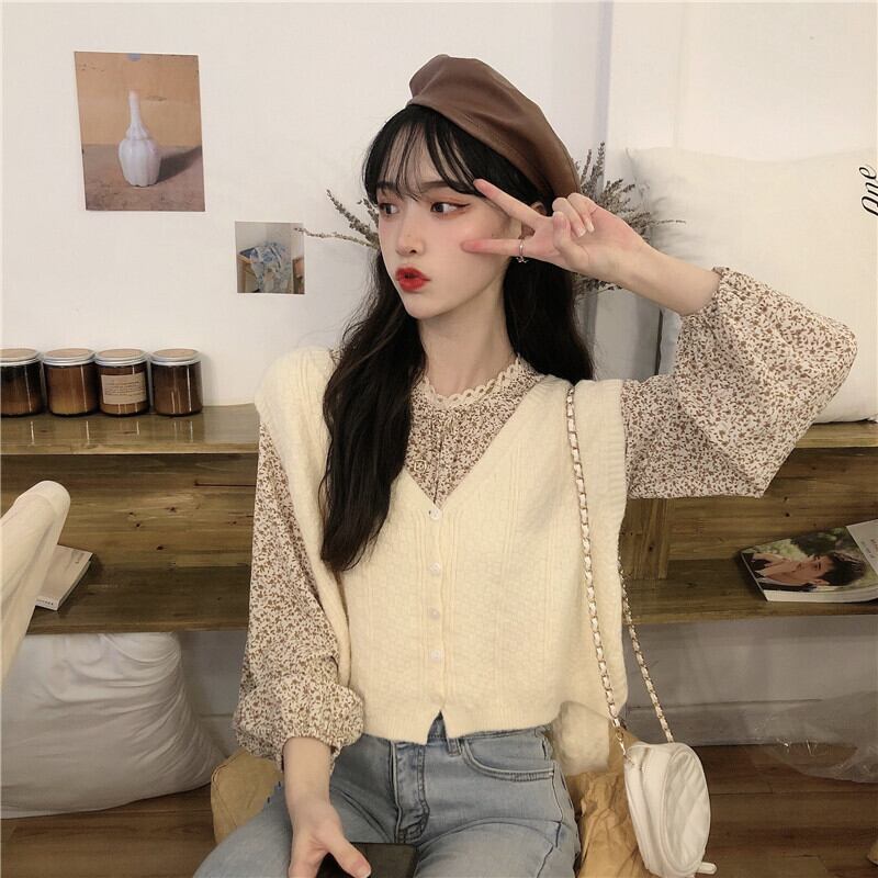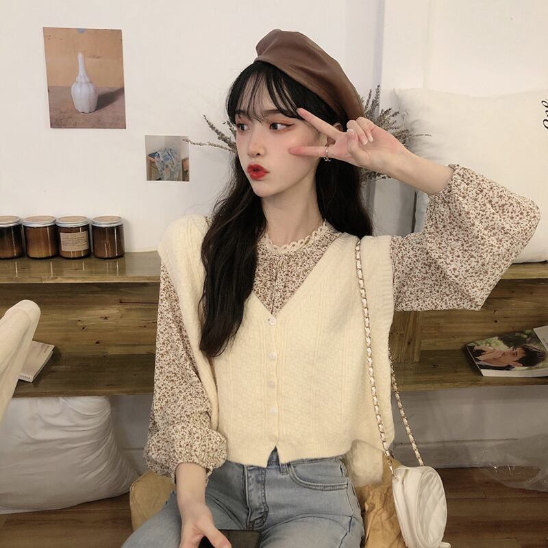 フローラルスリーブトップス スプリングニット 春物 花柄 Marchs86779908696
