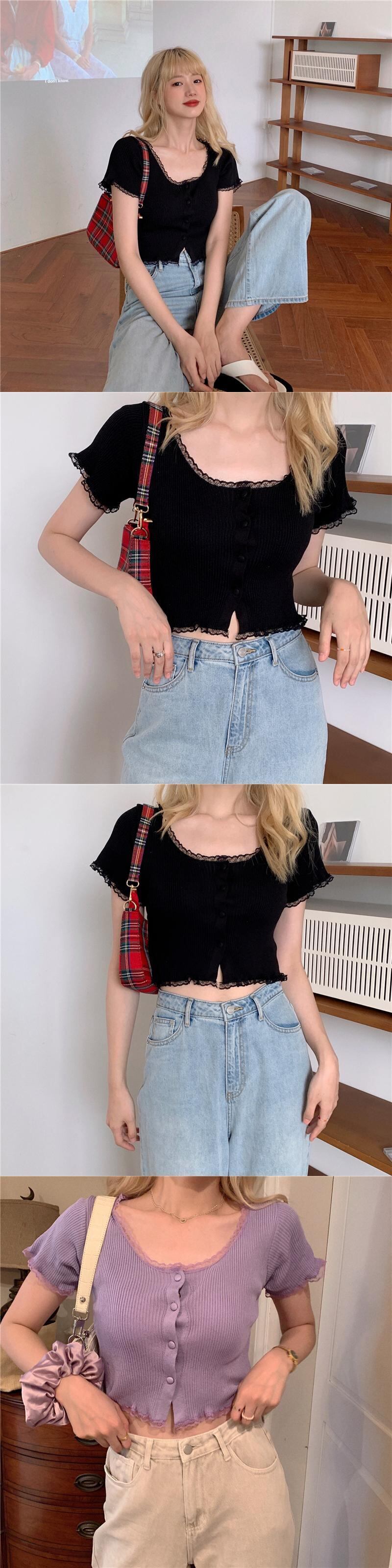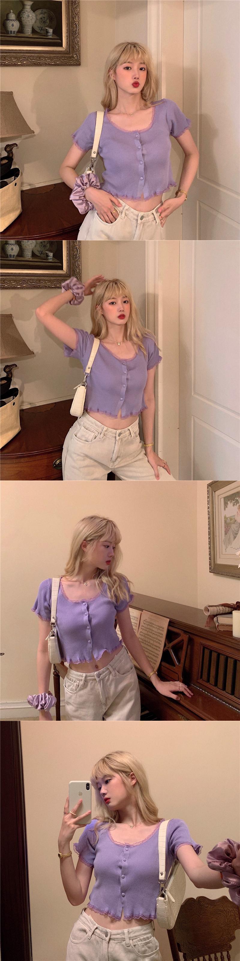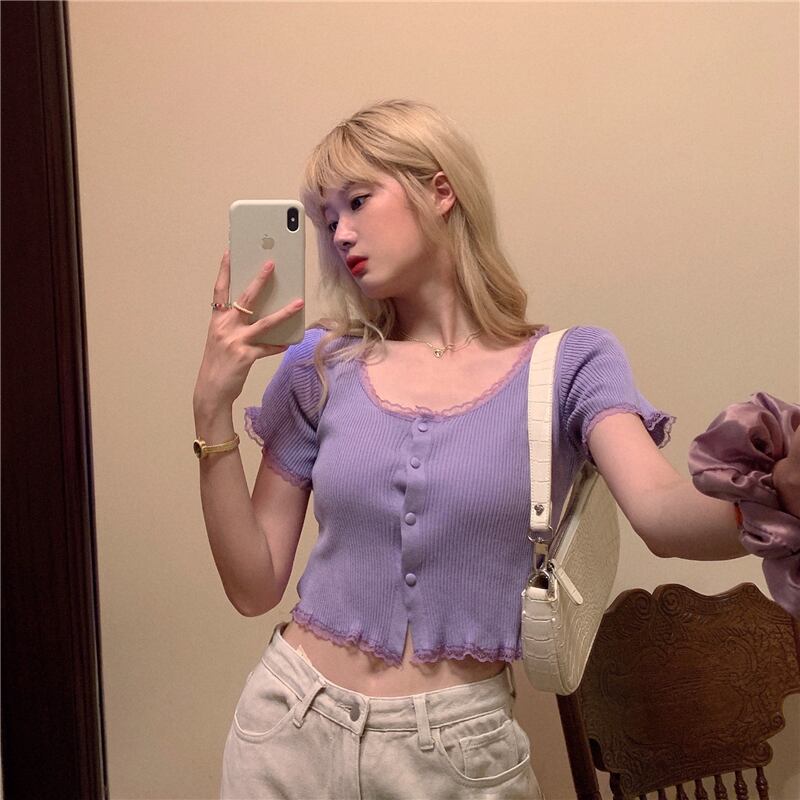 ホワイトニットTシャツレディース夏服ショートスリムスタイルトップス 夏物 Marchs83617873553