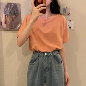 夏服ホワイトブラックTシャツルーズレッドトレンド コットン 夏物 ピュア Marchs59137089593