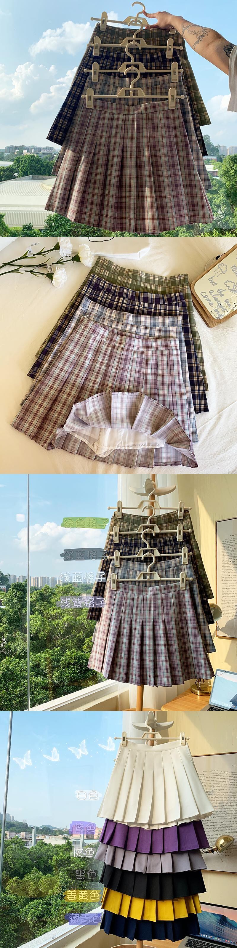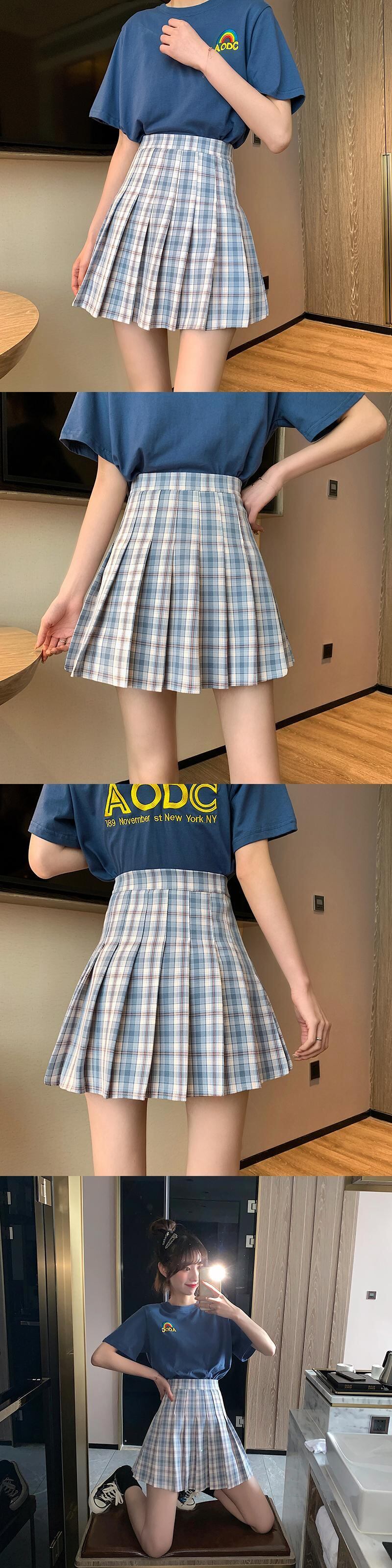 スカート 夏服韓国ファッションプリーツハイウェストウェストAライン薄手格子柄レディース 夏物 スタイル ウエスト Marchs7490545739