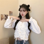 スプリングスタンダードギャザースリムショートシャツ ウェスト レトロ 春物 ウエスト Marchs34494600308