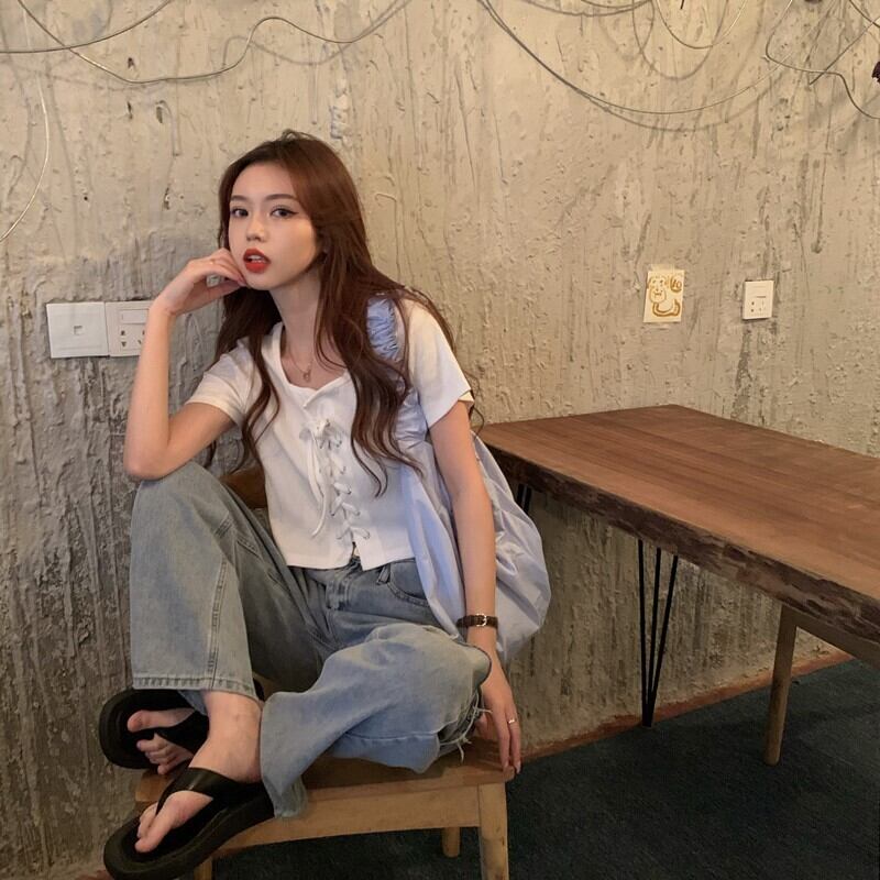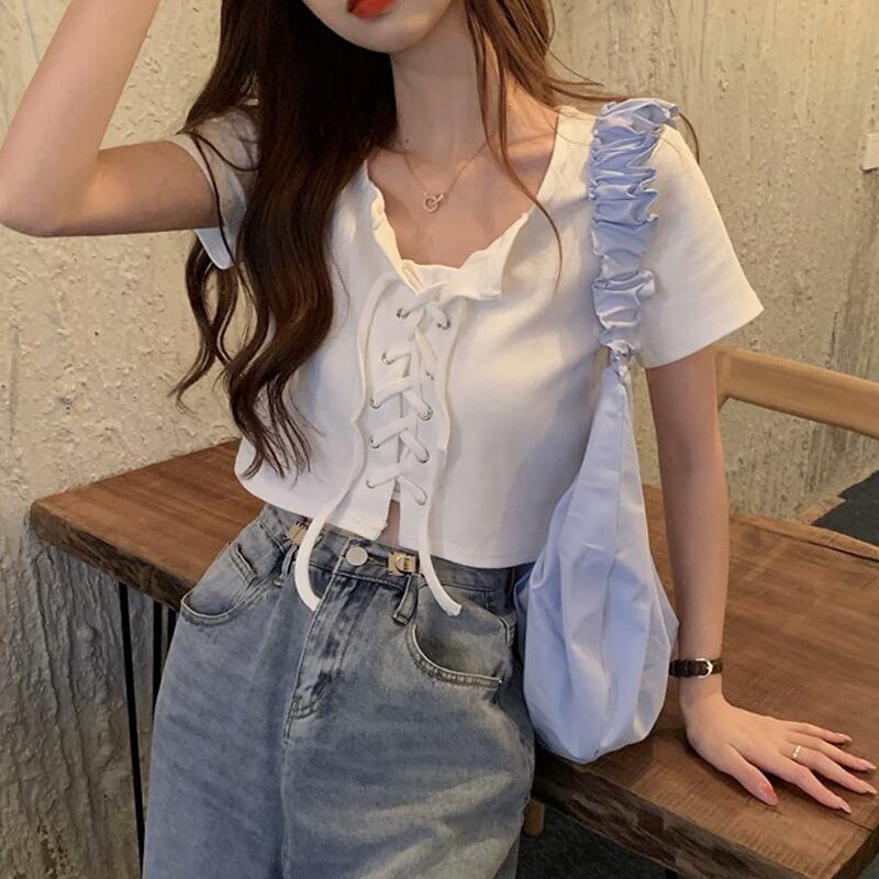 韓国ファッションスリム薄手カラーショートトップス レディース夏服ホワイト半袖スリーブTシャツ ハーフスリーブ 夏物 スクウェア スタイル Marchs10395086323