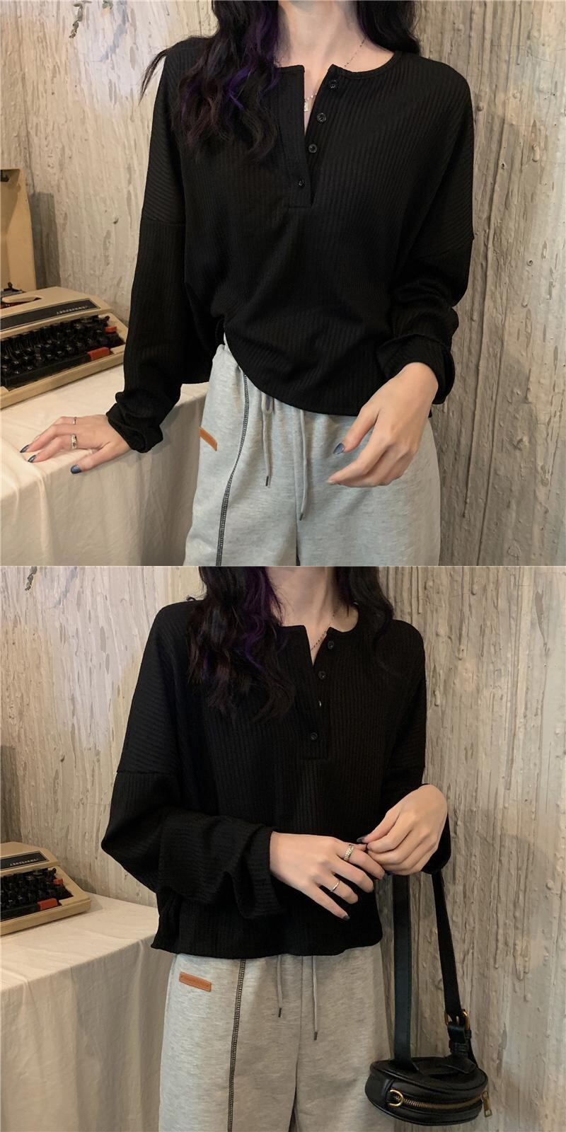 ホワイトTシャツシャツ スプリングショートゆったりニットトップス ロング 春物 長袖 Marchs15717221007