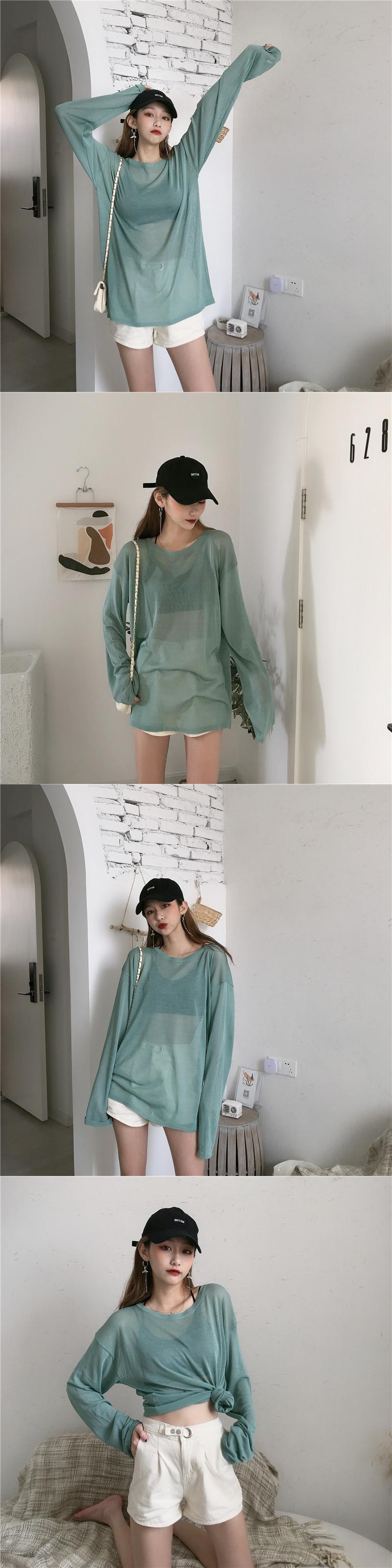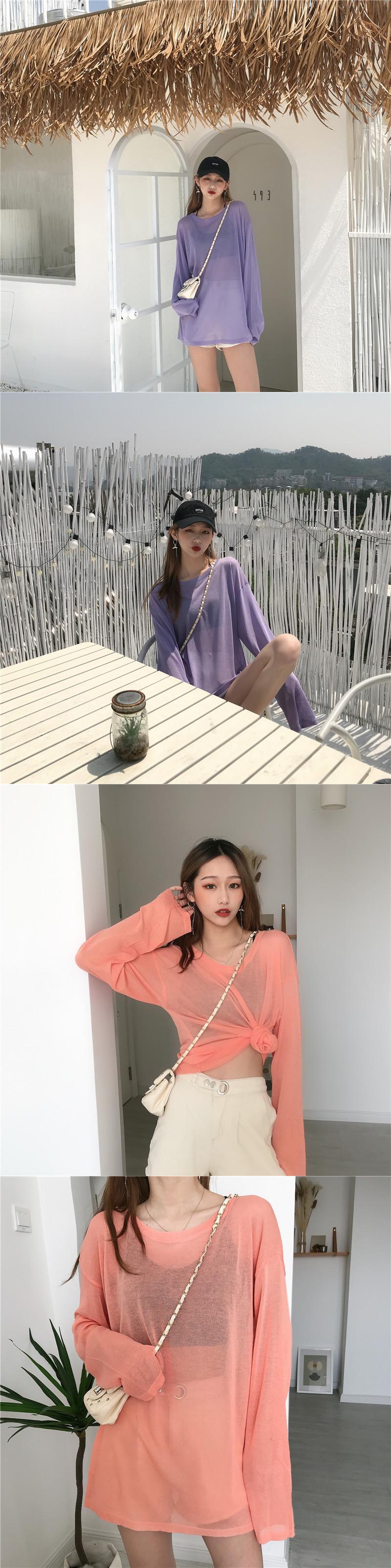 カラーTシャツシャツ スプリングブラウス 薄手トップス ロング 春物 シルク 長袖 Marchs8980594599